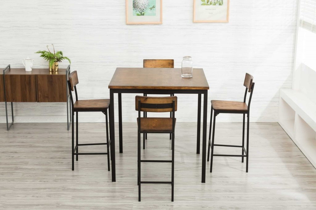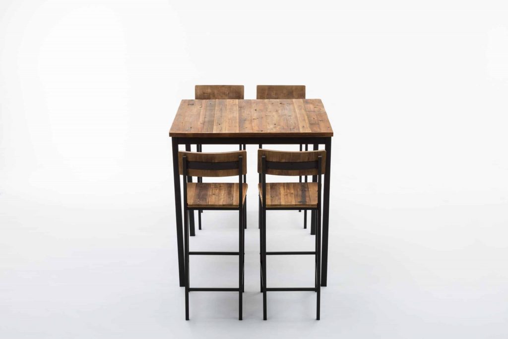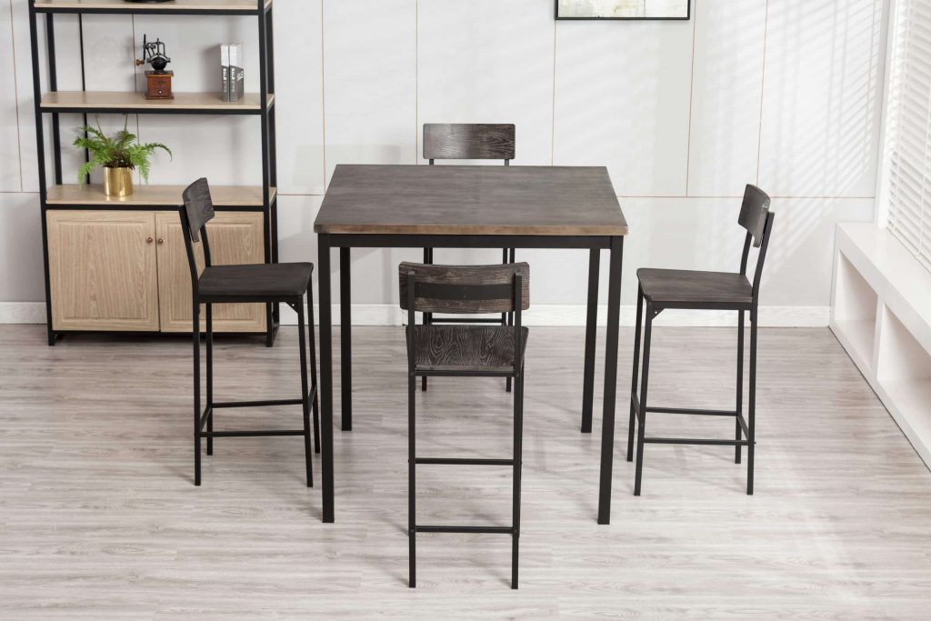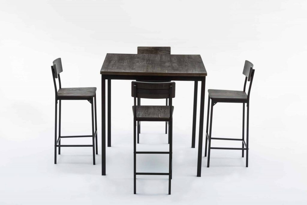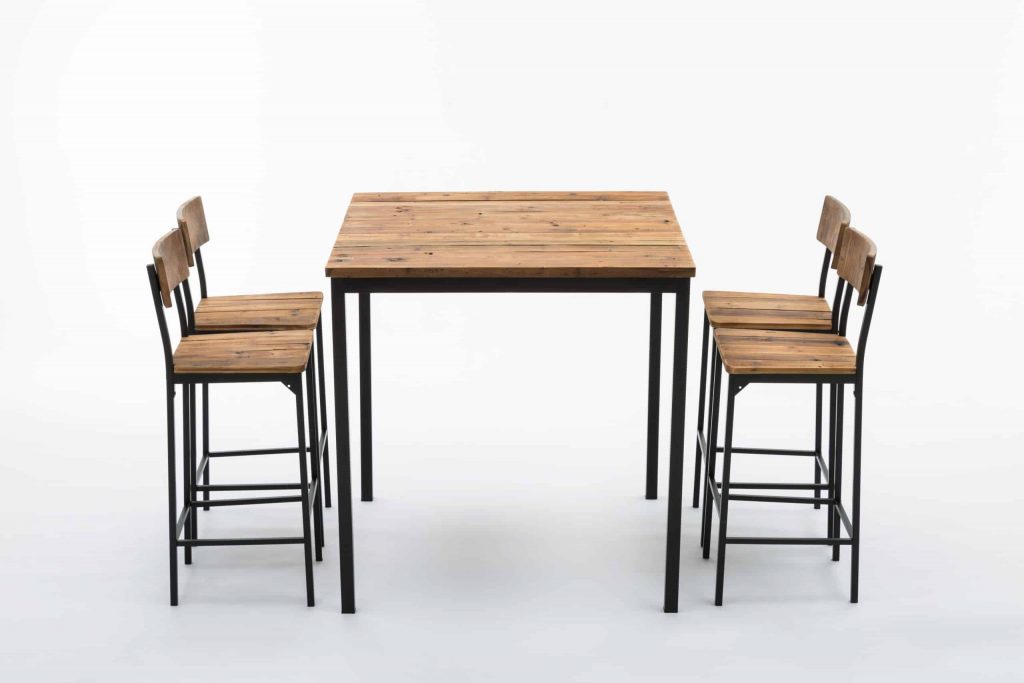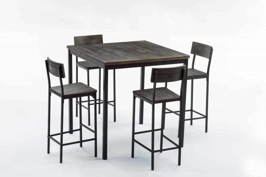 - Set comes with a bar height table and 4 bar stools