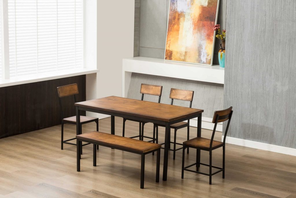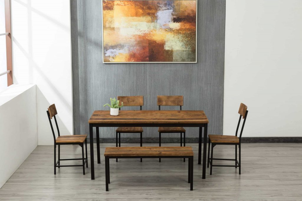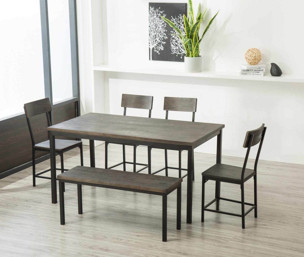 Boraam’s new 6-piece dining set is sure to add a different look to your kitchen or dining room. Comes with our Americano Dining Table, 4 Americano Dining Chairs, and our Americano Dining Bench. Each item is constructed with metal and birch wood. Spacious enough for the whole family to enjoy.