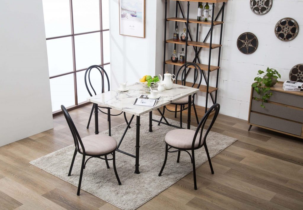Small-space dining is elegant and effortless with the Anders 5-Piece Dining Set. This five-piece set includes a dining table and four dining chairs – perfect for a family of four. The faux marble tabletop is so stunning, you won’t want to hide it with table runners or centerpieces.