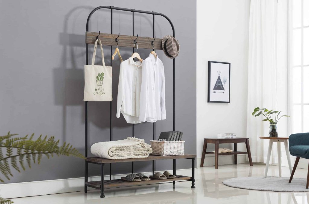 Think of the Annie Hall Tree as your family’s personal assistant: it organizes your entryway or mudroom effortlessly with its storage features. As kids and adults come home, they’ll hang hats, coats, purses, and scarves on the five hanging hooks. A lower slatted shelf stores shoes or backpacks, while the bench provides additional space for other accessories. Crafted from fir wood and metal, the Annie Hall Tree is a stylish, must-have piece in your organizational arsenal.