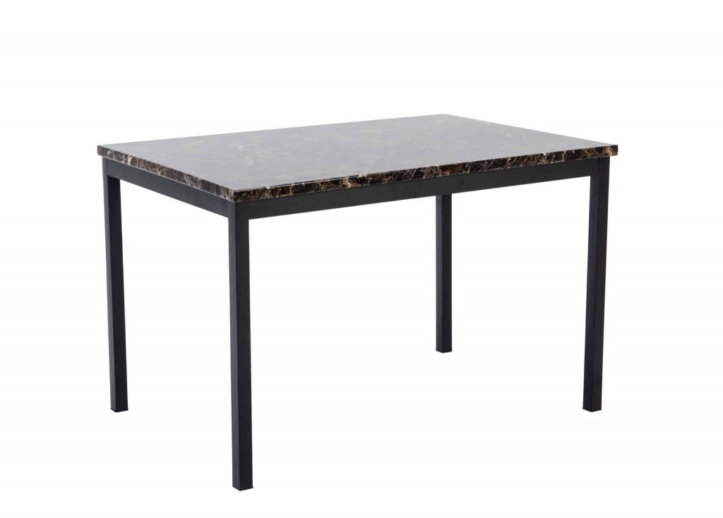 It’s easy to bring affordable, enviable design to your kitchenette or dining room with the Arjen Dining Table. This rectangular table features a faux marble tabletop made from MDF with durable paper laminate. It rests on a sturdy metal frame. The table fits four guests (six if you don’t mind getting cozy!). To complete your dining set, pair this table with the matching Arjen Dining Chairs (sold separately).