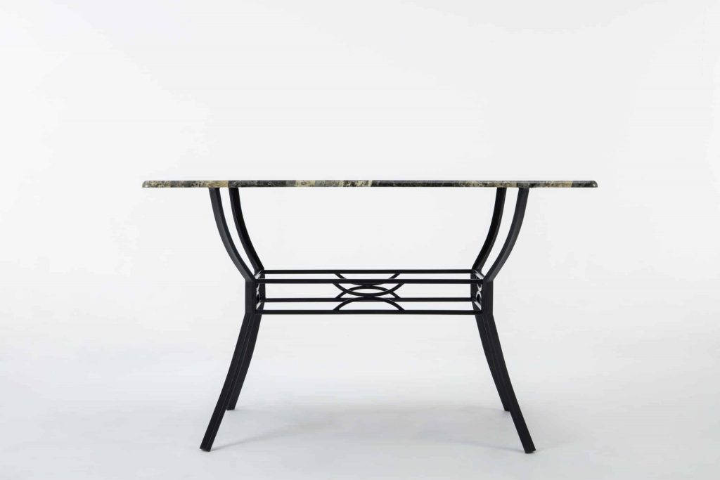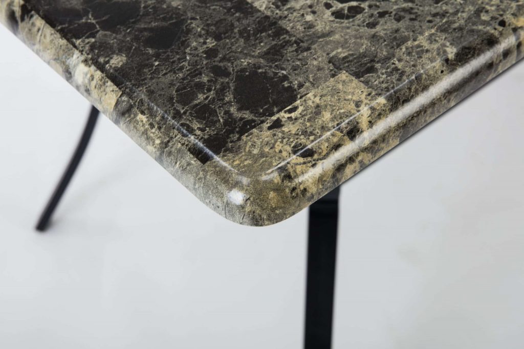 - Dining table with rectangular faux marble top gives the table a bright and modern appearance