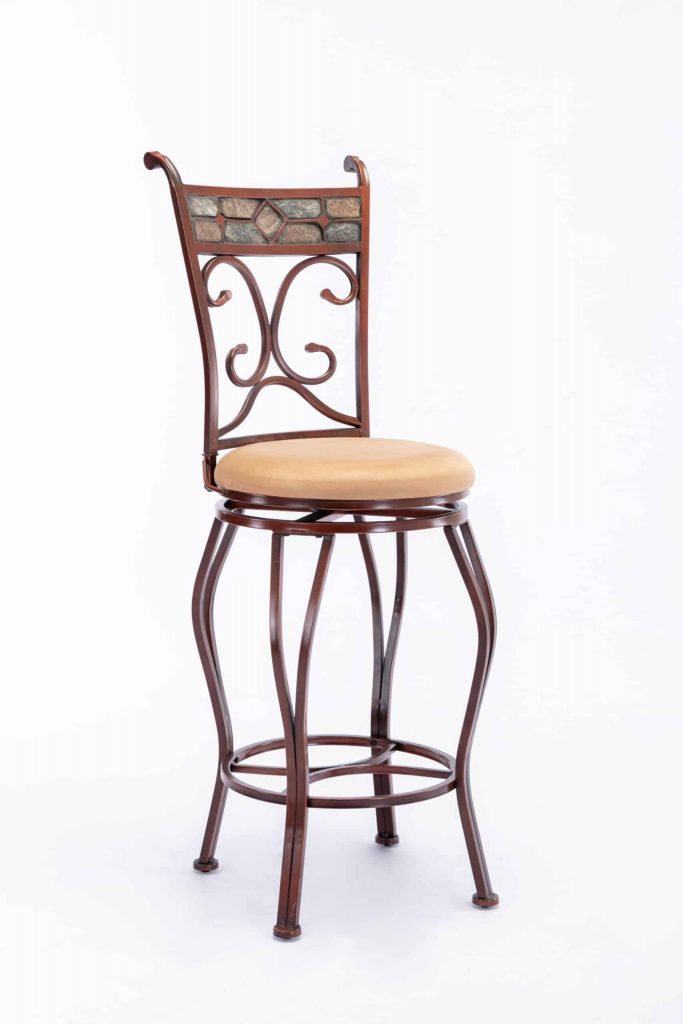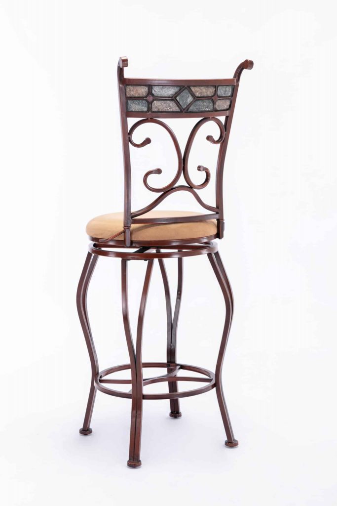 Whether you’re looking for the finishing touch to your home bar or counter, or you’re hoping to create a custom pub set, the Beau Swivel Stool is raring to go. This metal swivel stool features decorative mosaic slate panels on the backrest adding a beautiful level of warmth to your decor. The plump high-density foam seat cushion is covered with beige microfiber upholstery. Prop your feet on the durable footrest for comfortable long-lasting seating. Pair this stool with the matching Beau Pub Table (sold separately) for a match made in heaven.