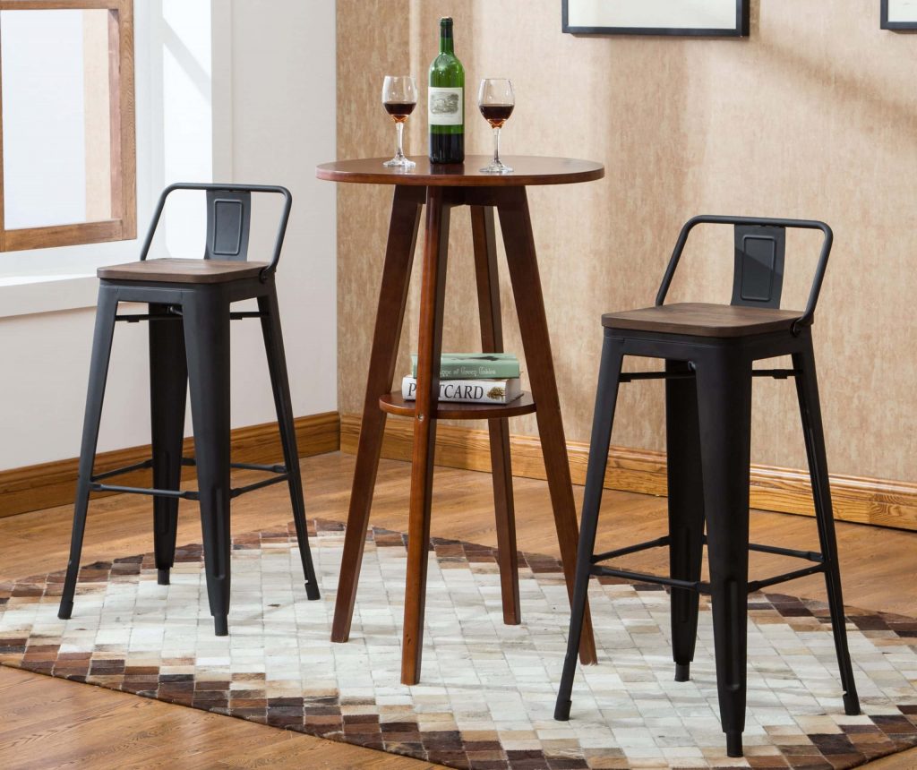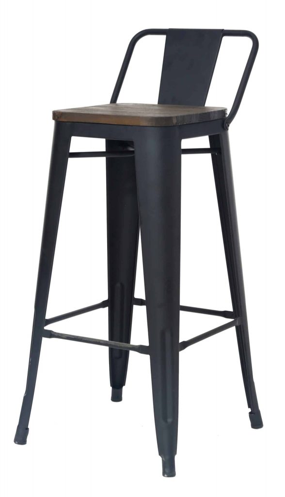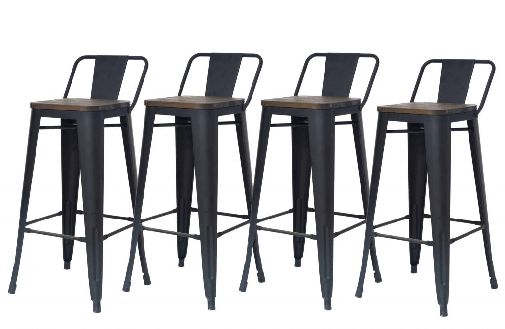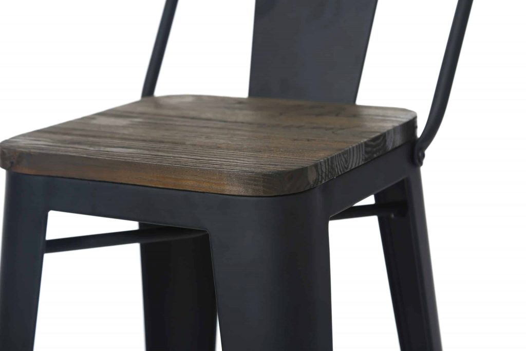 Metal stools, set of 4, black or gray, backrest, elm wood seat