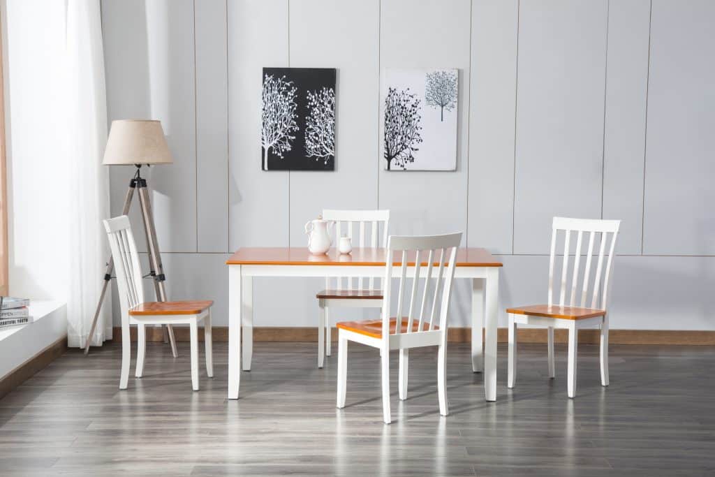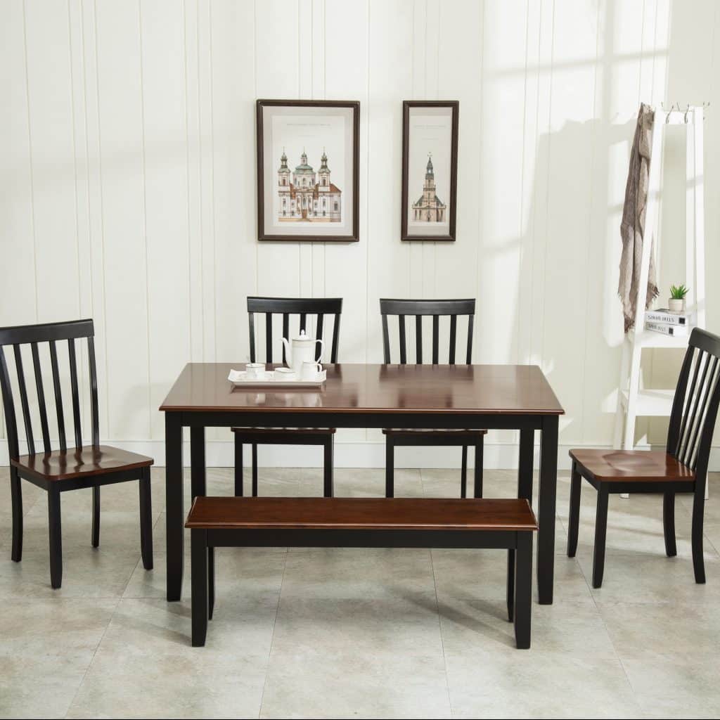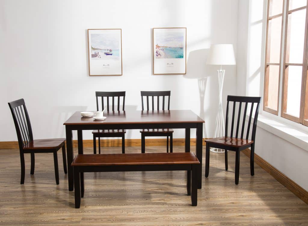 The Bloomington Dining Table allows you to set the stage – and set the table – for the perfect dining room experience. This Shaker-style dining table comes in your choice of two-toned color combinations. It’s precisely crafted with a solid rubberwood frame and a tabletop made from durable engineered wood with wood veneer. This dining table can fit up to six of your favorite people – just pair it with the matching Bloomington Dining Chairs and Bloomington Dining Bench for a dining room made in design heaven.