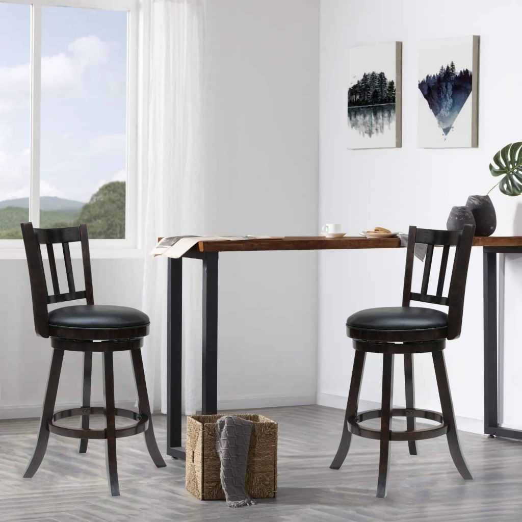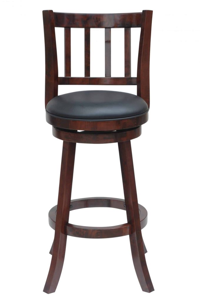 The Bloomington Swivel Stool is the perfect design chameleon, bringing versatile looks to your home. The rich wood finish and black faux leather offer sleek, traditional features perfect for a kitchen setting. Meanwhile, the high-density foam padding, full-ring footrest, and 360-degree swivel also promise the Bloomington is a comfortable, inviting seat at a home bar or in a den or game room. Available in counter and bar height options, and in three different finishes.