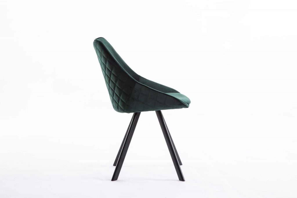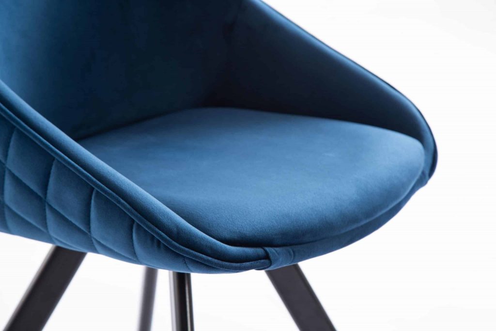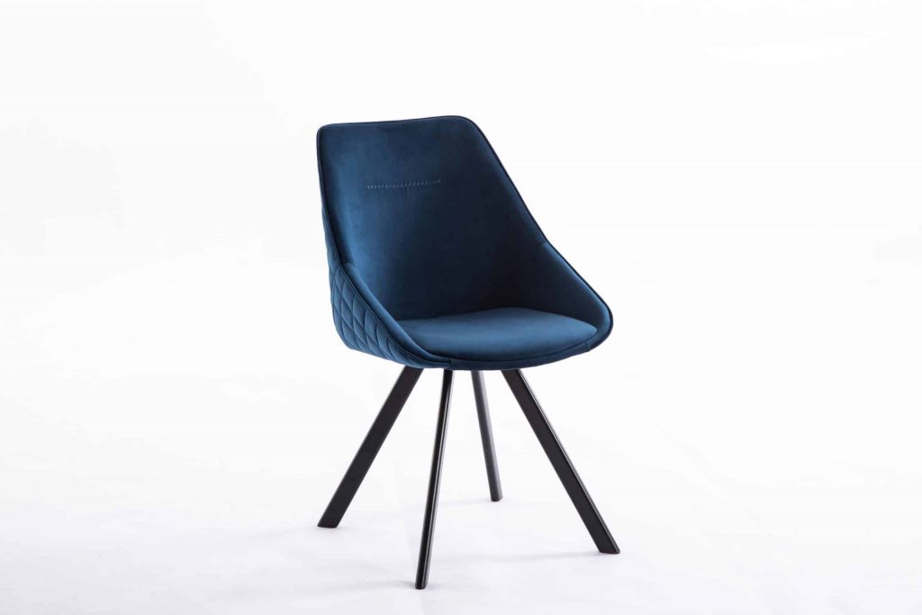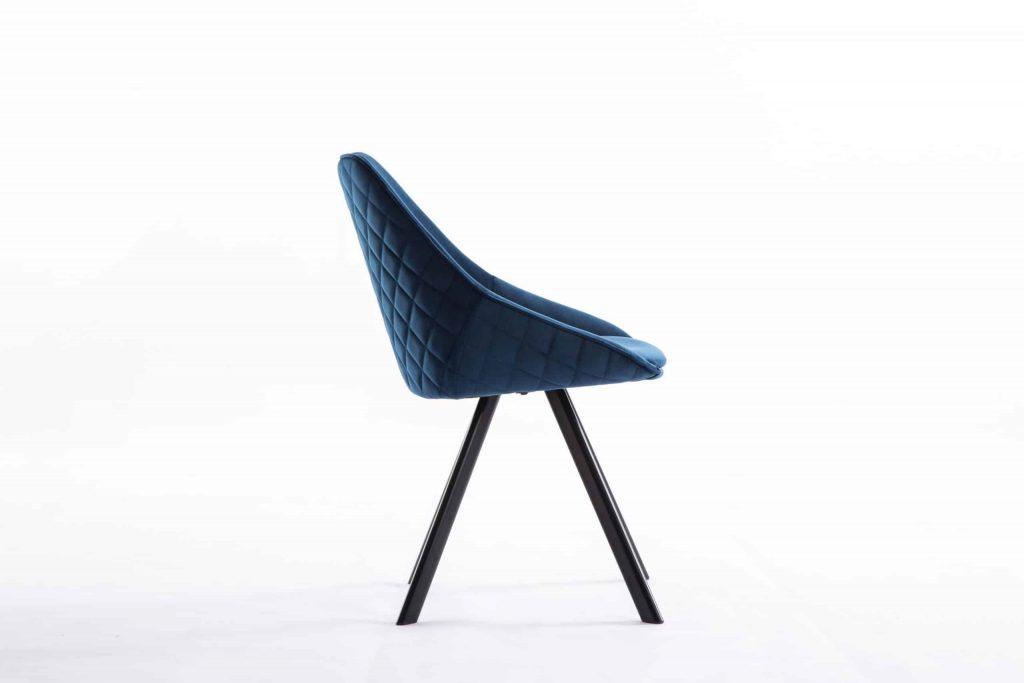 This accent chair is constructed with a metal base and a fabric seating. It is padded for comfort. Item is available in a blue or green finish. Comes in a set of 2. This chair comes out of China. *Product weight is for a single chair*
