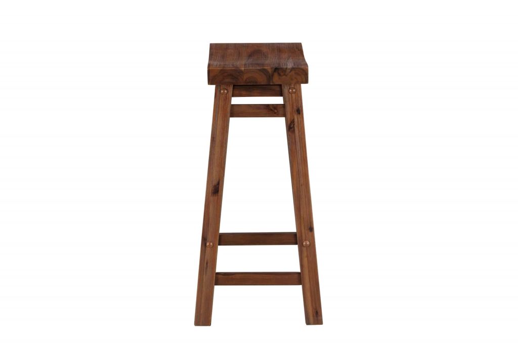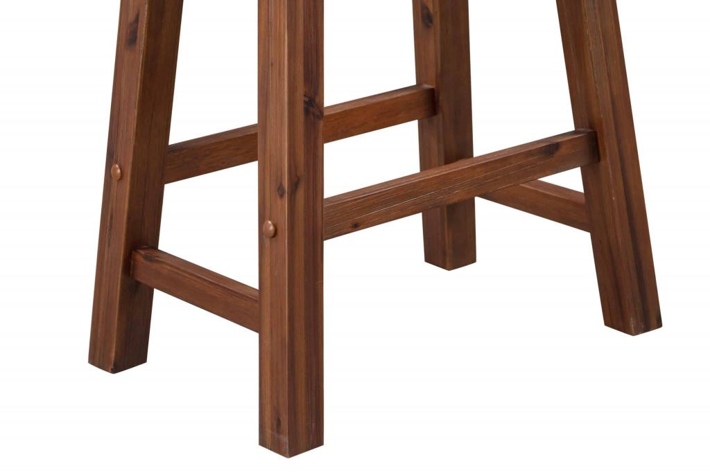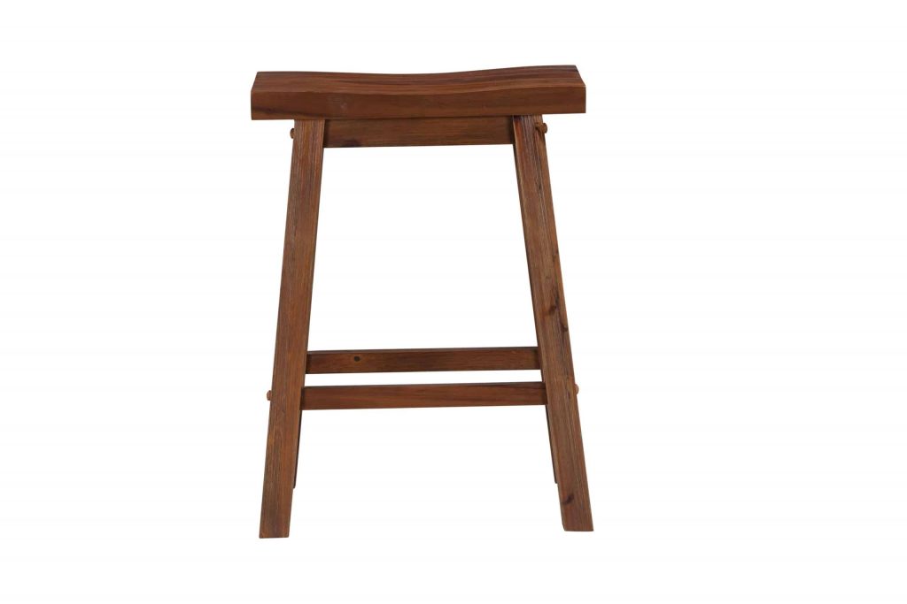 - Dining stools feature ergonomic saddle seat, and stability stretchers on base double as footrests