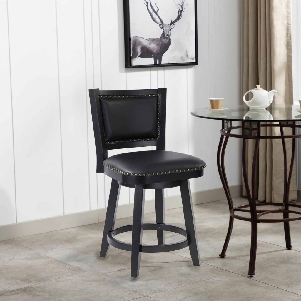 - These fashionable stools are comfortable and sturdy with solid rubberwood frame, large base that prevents any rocking or movement potentially caused by using the swivel