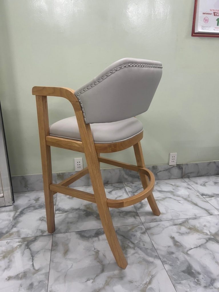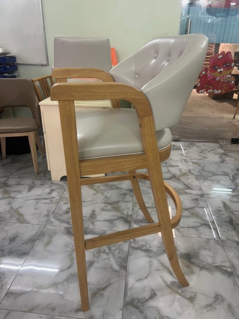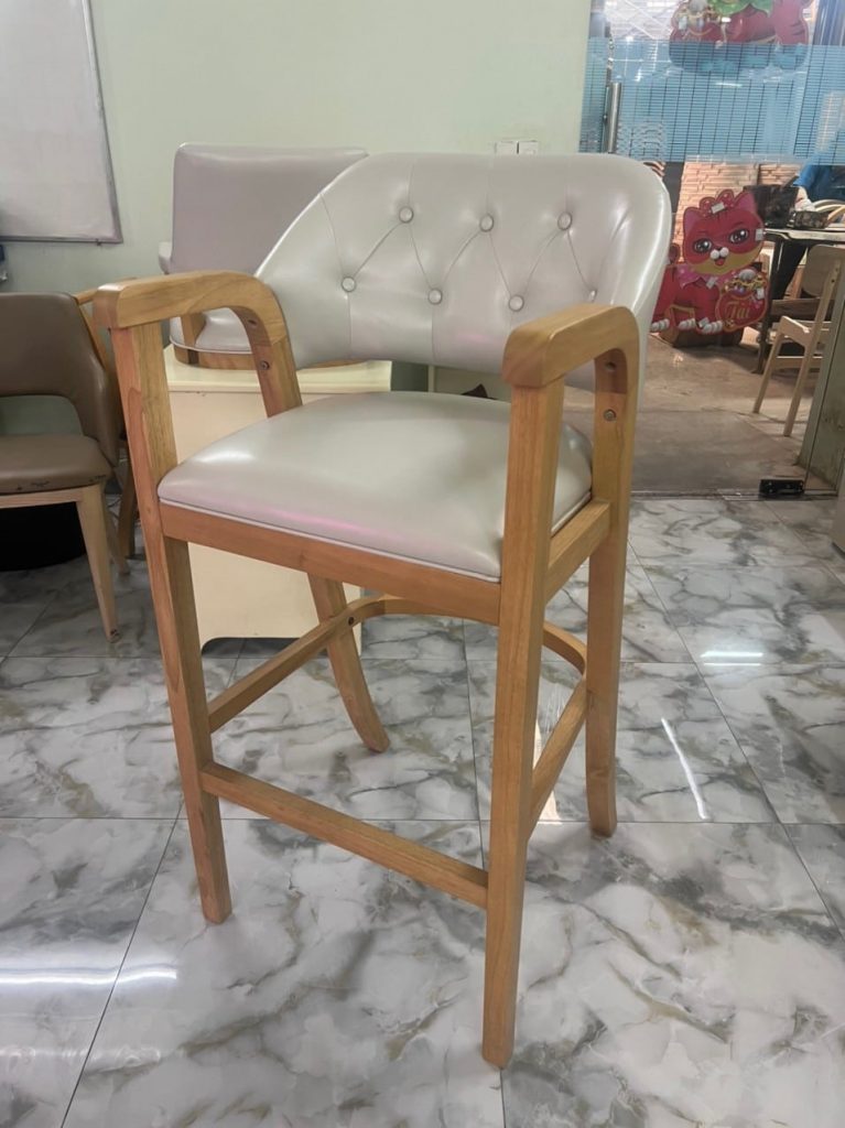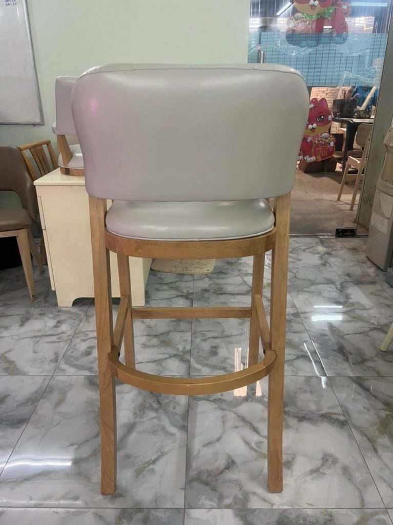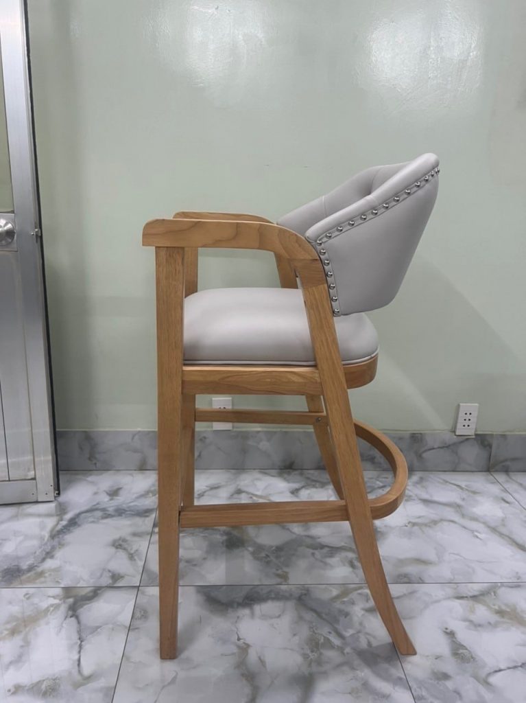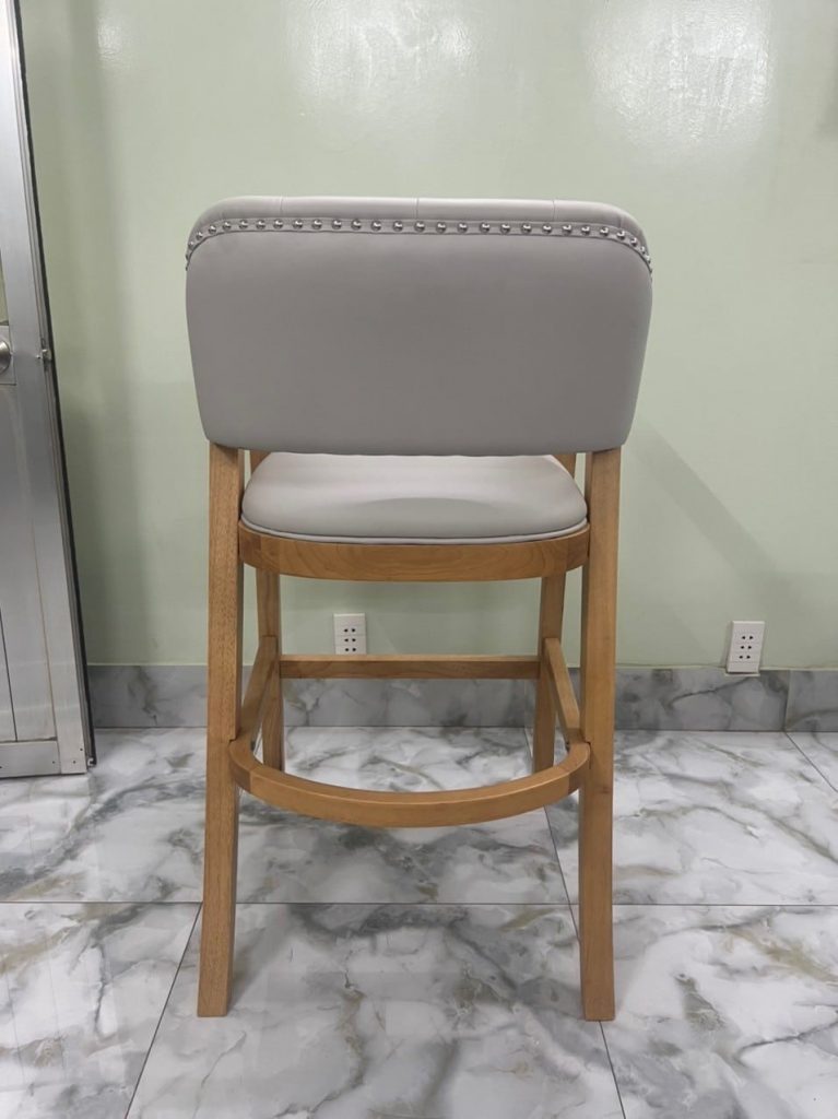 | – Rubber wood, U footrest by plywood – Seat & back cushion: Shinny grey PU, – Metal kick plate – powder coating. – Packing : 1 pcs/ ctn RTA construction |