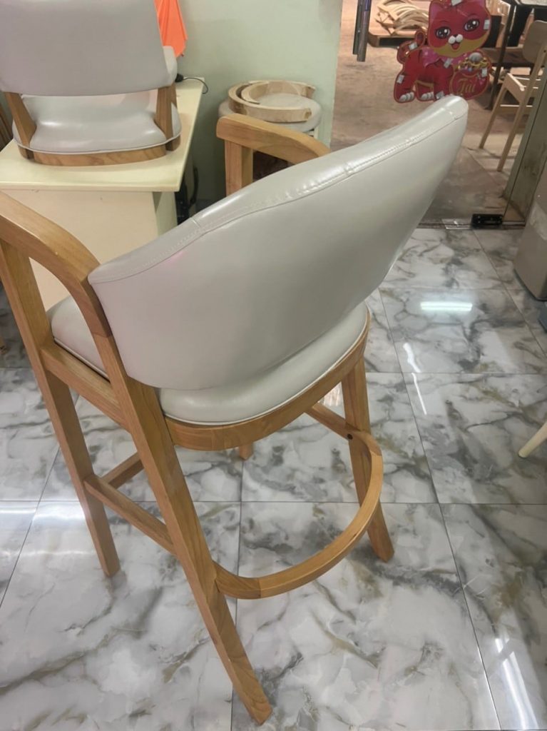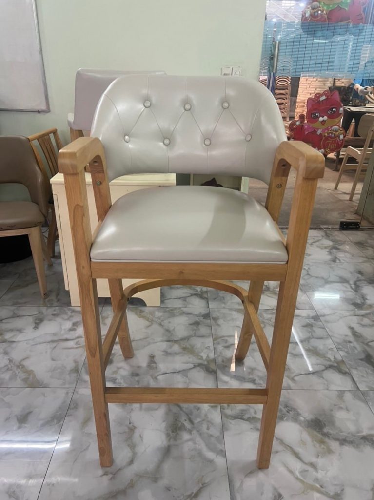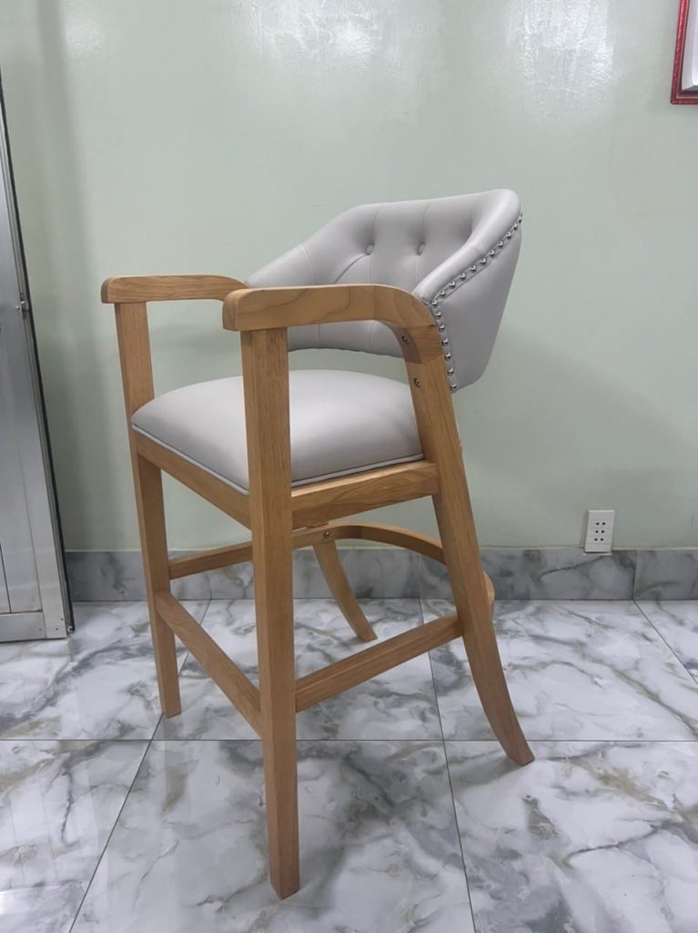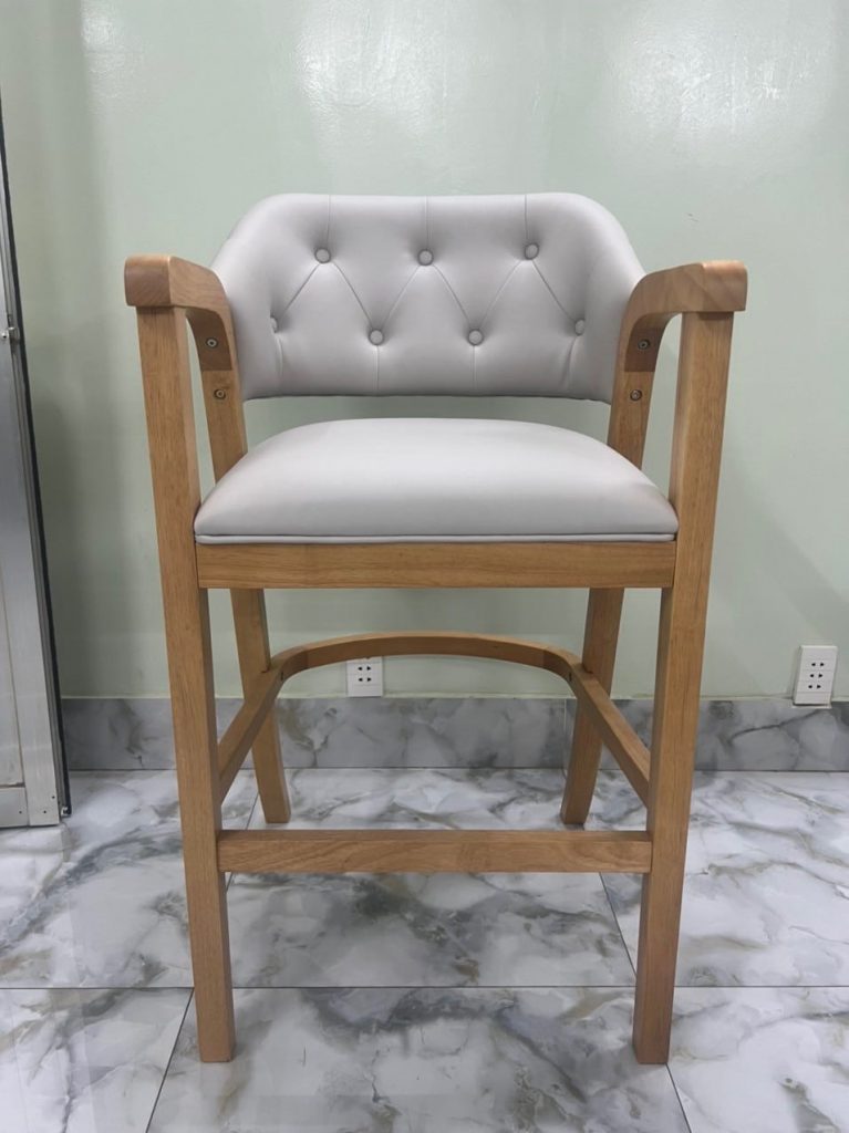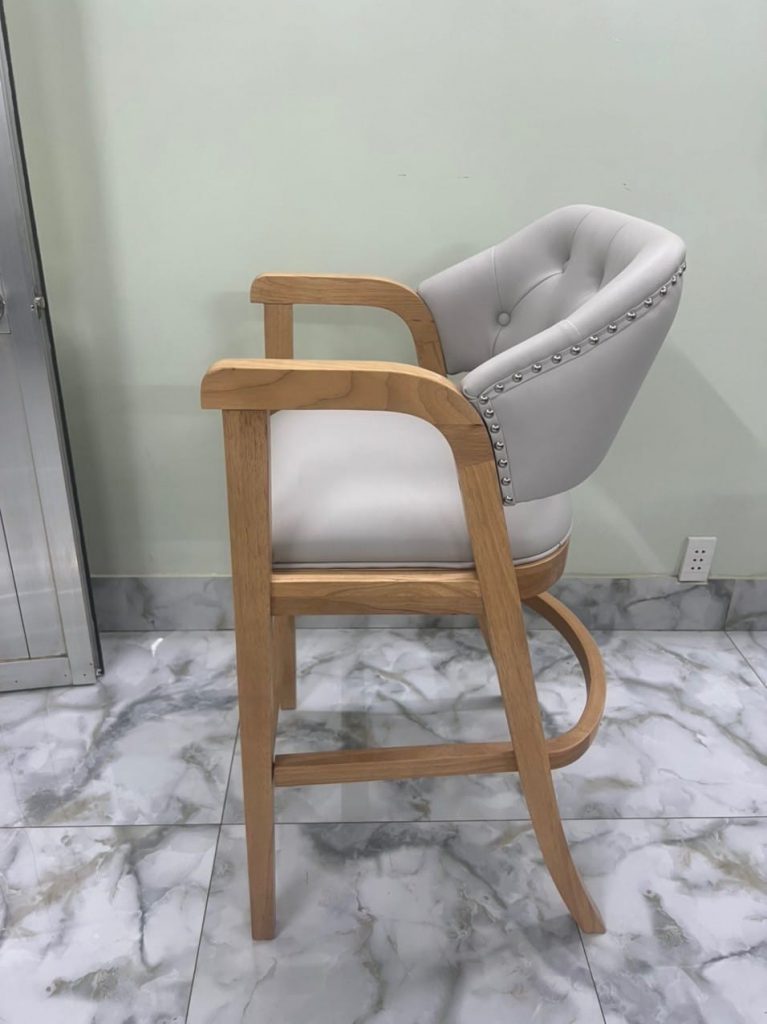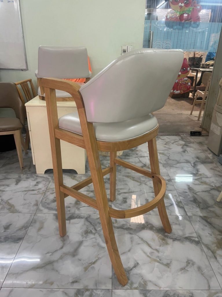 | – Rubber wood, U footrest by plywood – Seat & back cushion: Shinny grey PU, – Metal kick plate – powder coating. – Packing : 1 pcs/ ctn RTA construction |