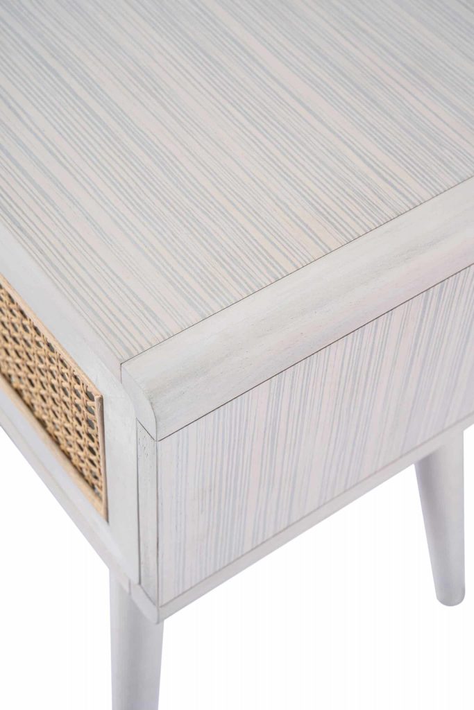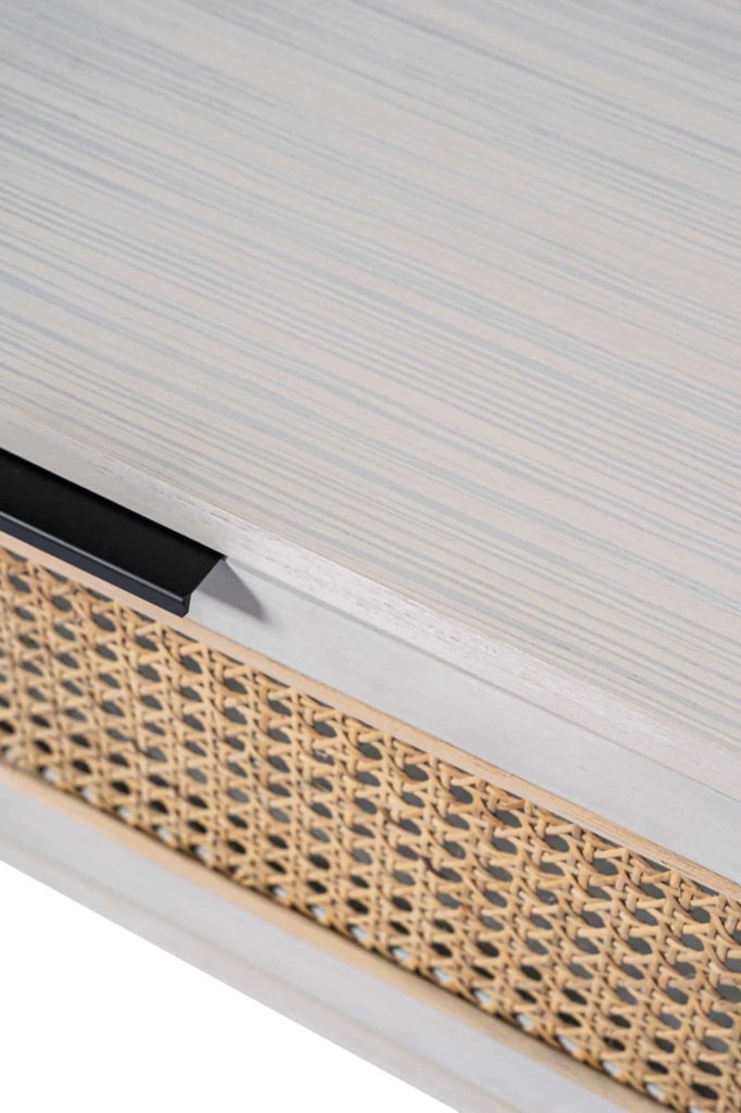 - The charming contemporary end table features a natural cane front panel on sturdy, splayed legs