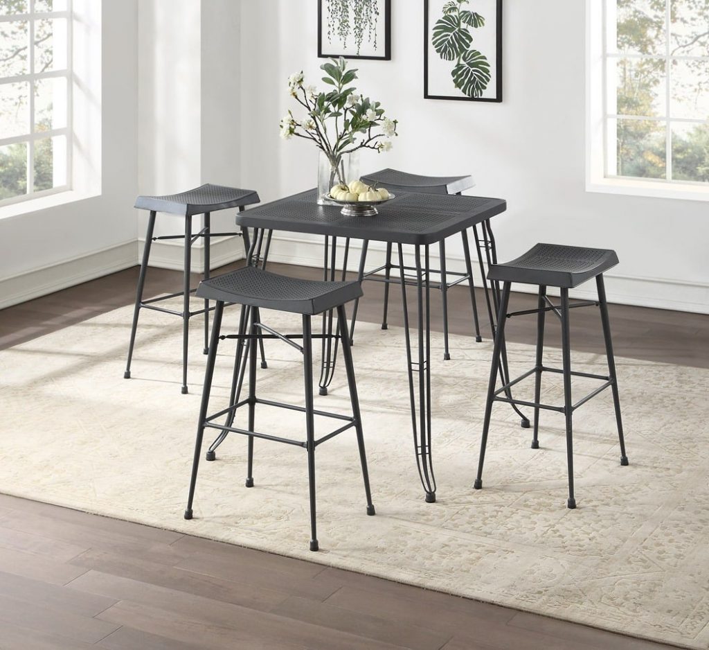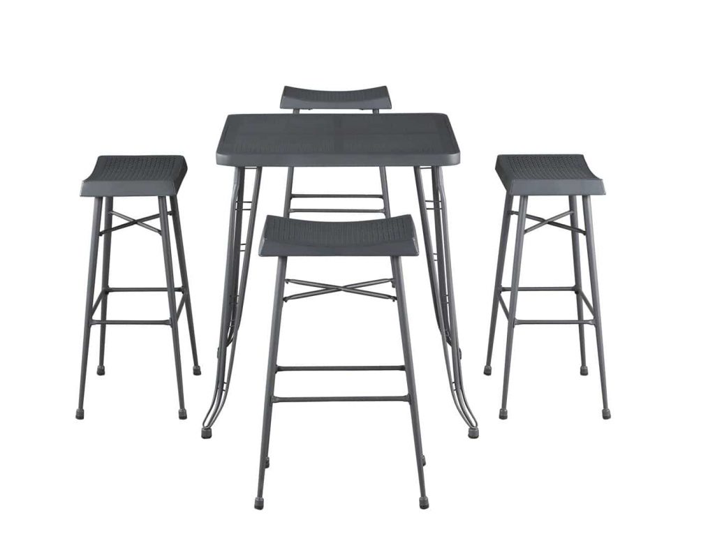 - Set includes 1 pub table and 4 backless stools