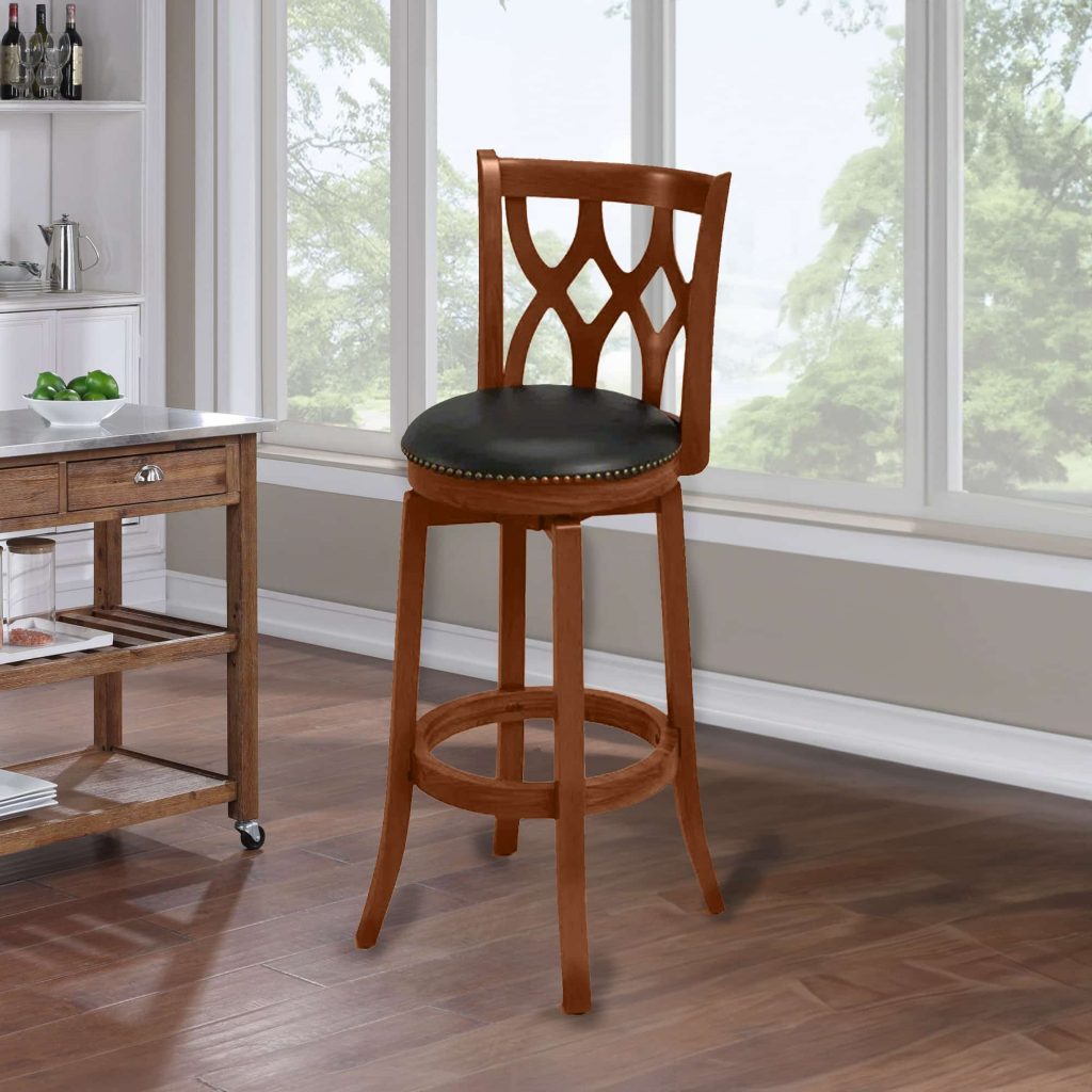- These fashionable stools are comfortable and sturdy with solid rubberwood frame, large base that prevents any rocking or movement potentially caused by using the swivel