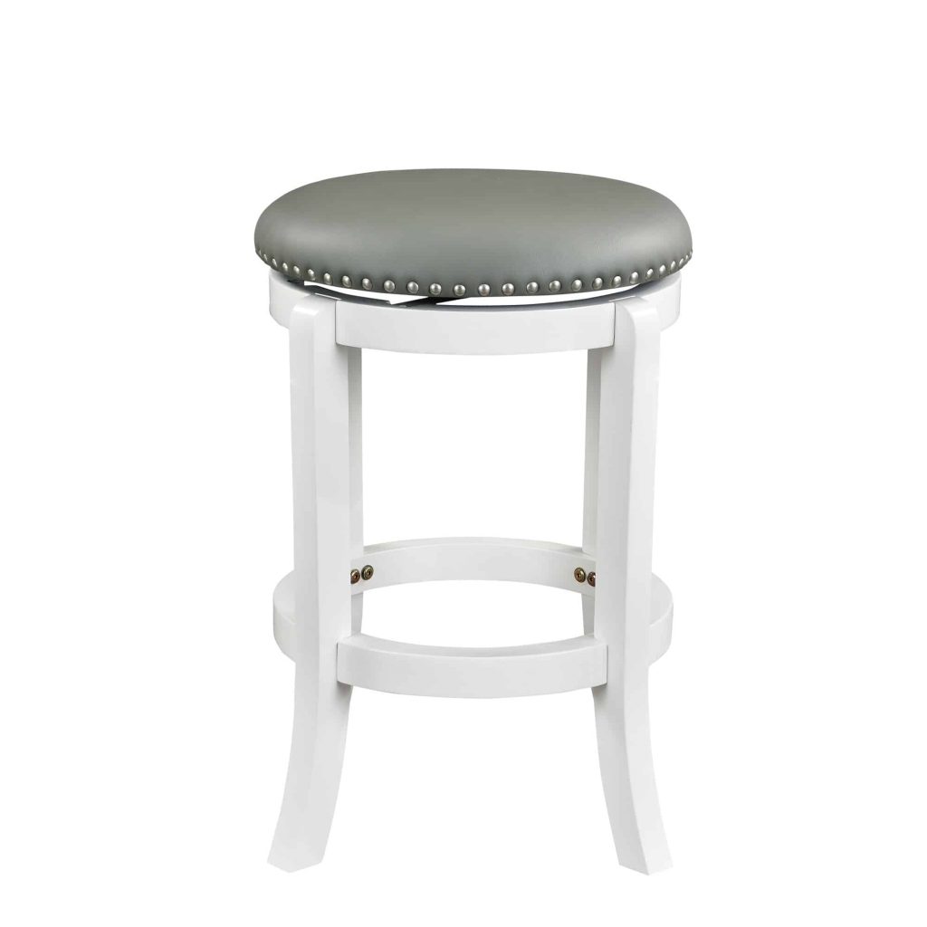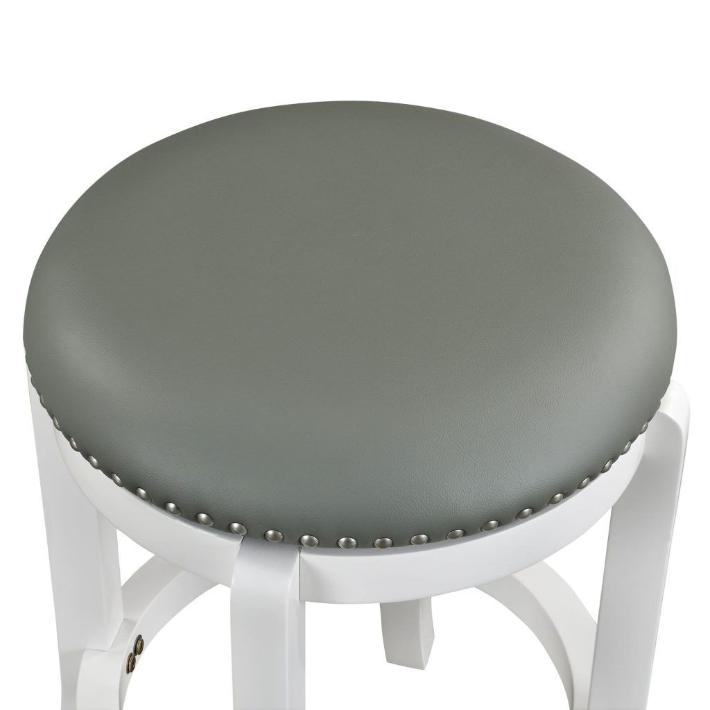 The Cordova backless swivel stool has the versatility, comfort, and style your home bar, game room, or kitchen needs. The Cordova features solid rubberwood construction with strategically flared legs, adding enhanced balance and durability to the design. The wonderful full 360-degree swivel function allows for maximum mobility, the smooth glide swivel function allows you to change directions with ease, making this your new favorite stool in your home. High-density foam cushion seat, which is upholstered in plush faux leather. The faux leather upholstery is easy to wipe clean, even if you spill your drink or your snack. Protective floor glides on the base guard your hard floors against scratches or scuffs. The Cordova is also available in standard counter and bar height options.