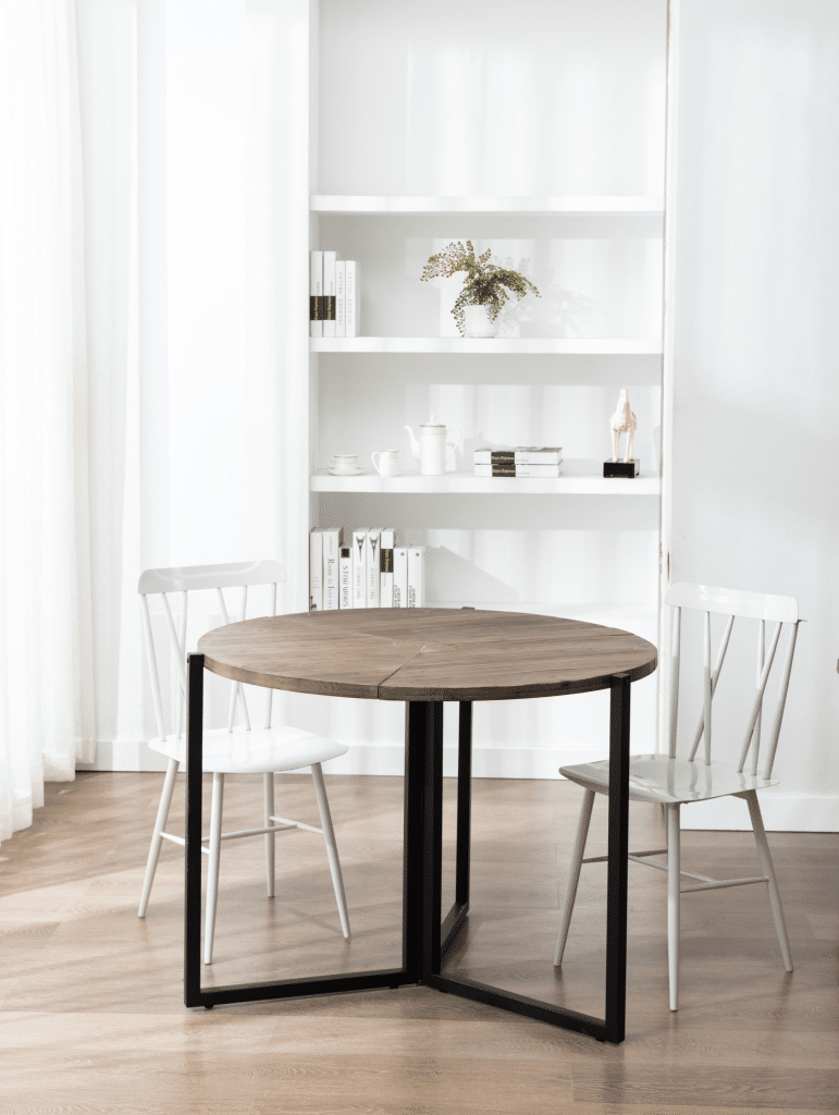 The Emry Folding Dining Table has such a simple and dynamic design to bring into your dining room or kitchen. Gather your family around for some unforgettable nights. The Emry Folding Dining Table is made with a natural fir wood top and a metal framed base. What separates this table is its ability to fold up and together into pieces that are easy to move. It certainly can bring a convenience and functionality into your home. Pair with our Emry Folding Coffee Table and Emry Folding Side Table (both sold separately) to complete the set. No assembly needed, the Emry Folding Dining Table is ready to go right out of the box.