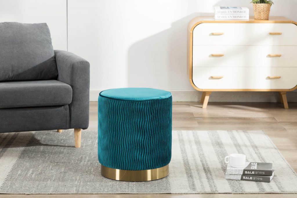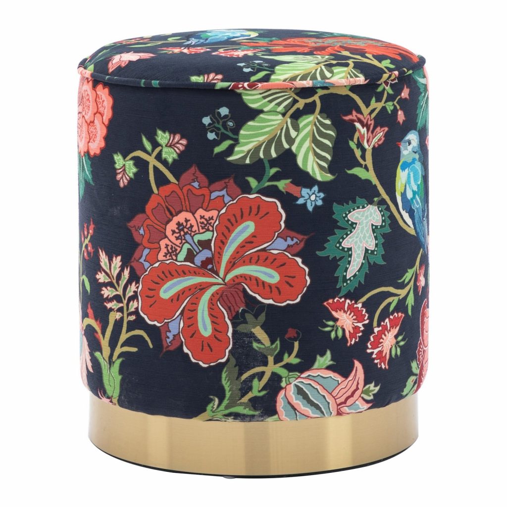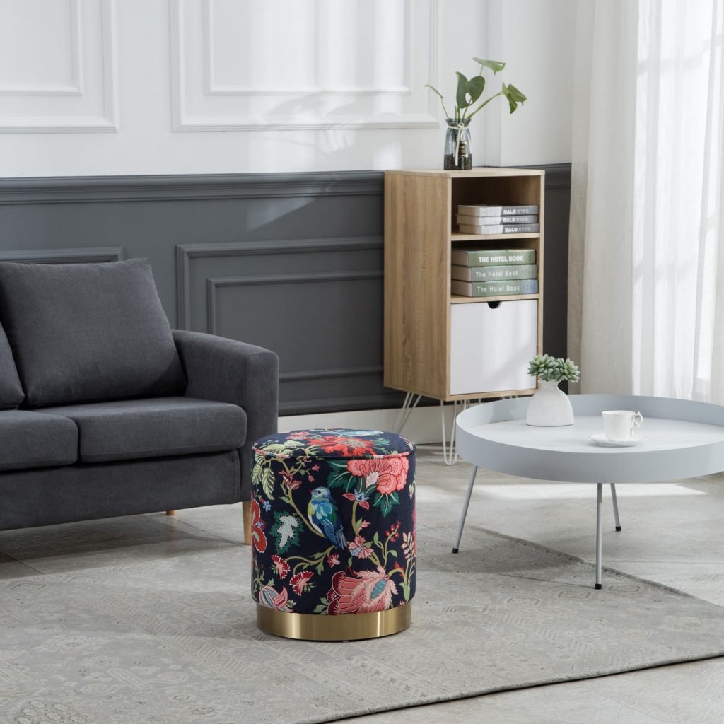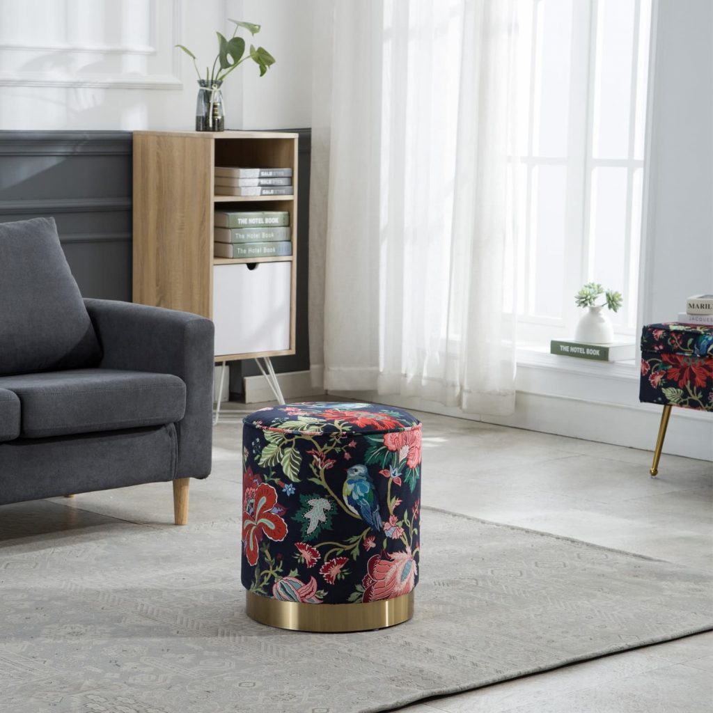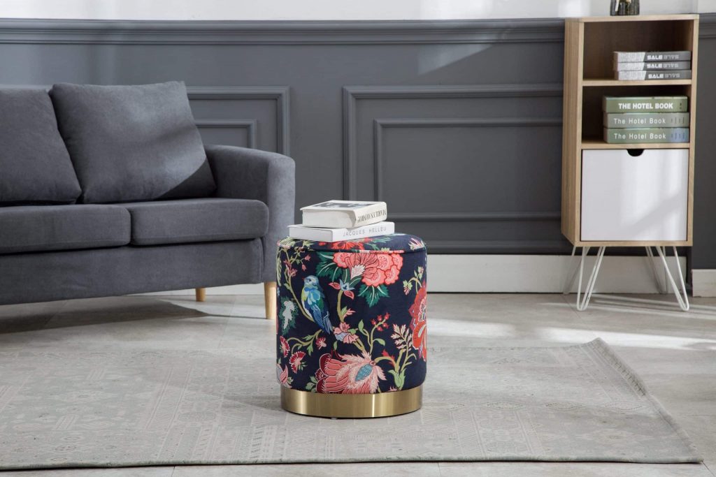 Unique flannel ottoman in terms of style. It is constructed with a flannel and sponge top and sides with an iron base. Available in three finishes; green, ivory, and floral. It is a perfect addition to your bedroom or living room. No assembly required.