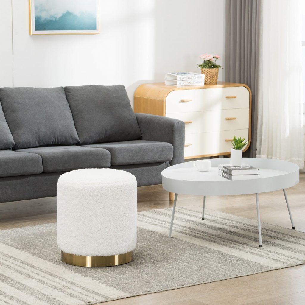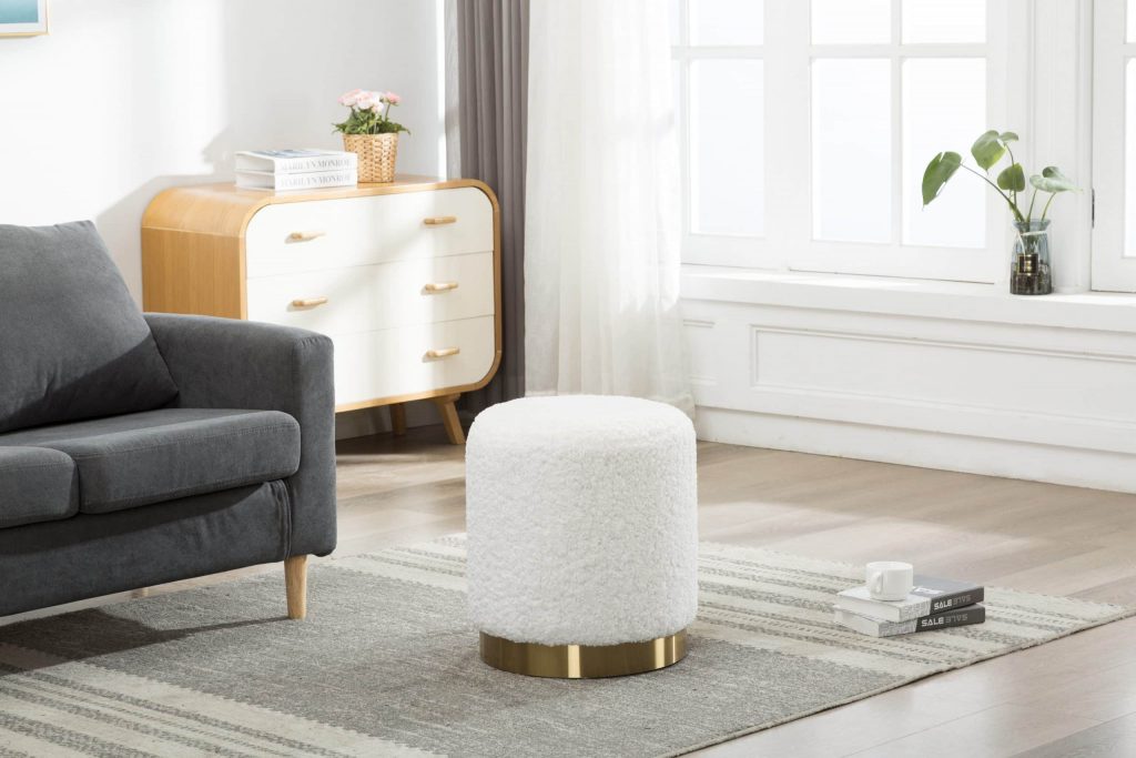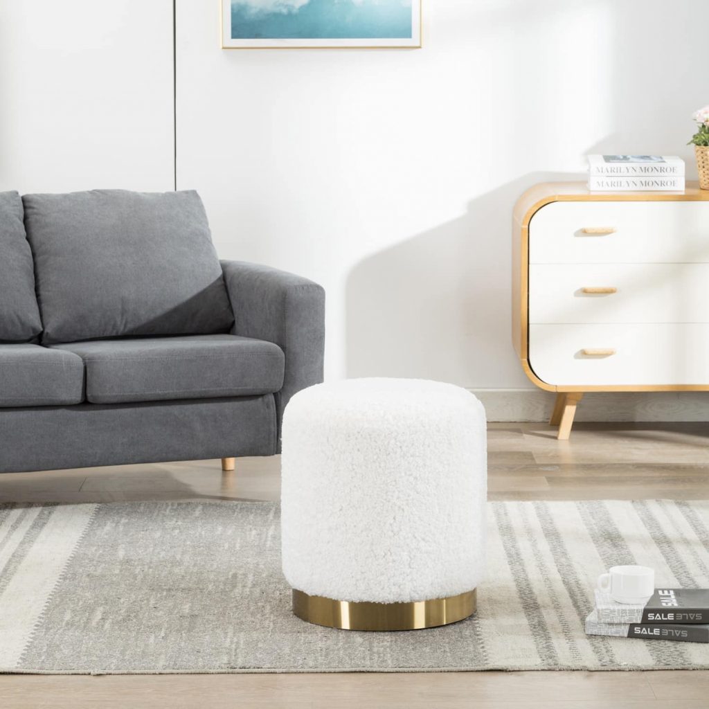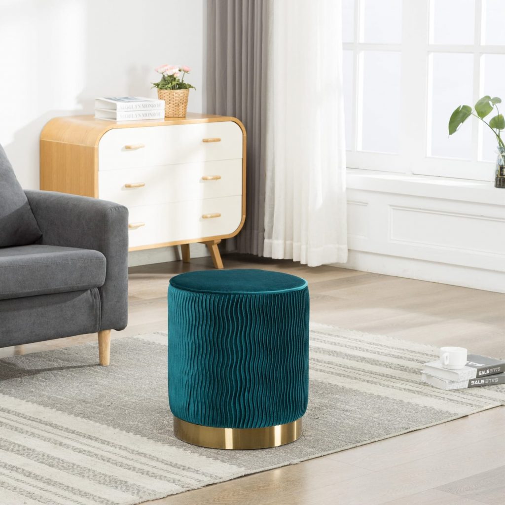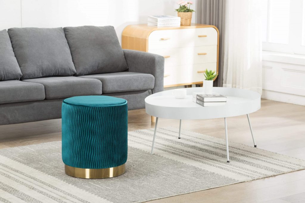 Unique flannel ottoman in terms of style. It is constructed with a flannel and sponge top and sides with an iron base. Available in three finishes; green, ivory, and floral. It is a perfect addition to your bedroom or living room. No assembly required.
