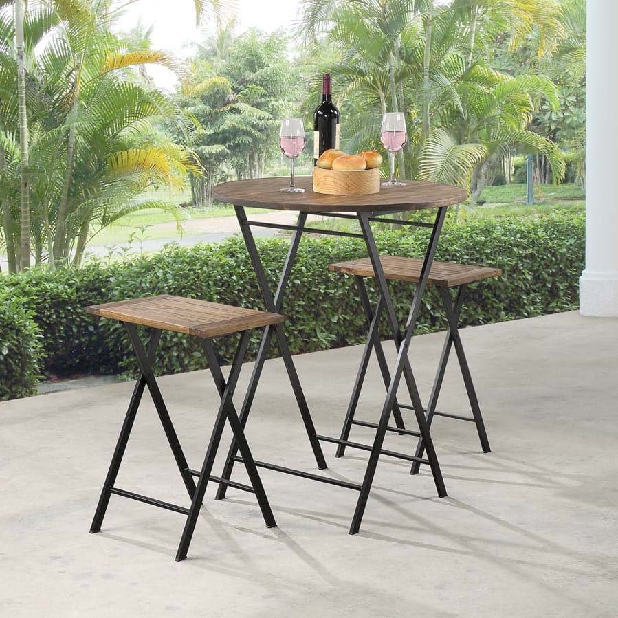 Beautiful folding stools with Acacia Wood top and a Black Metal frame. Pairs great with matching pub table. This comes as a set of two stools. This item comes out of Vietnam.