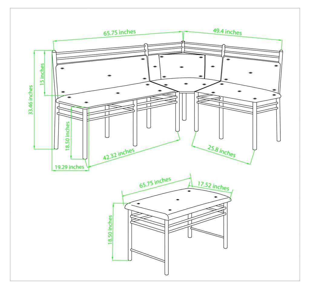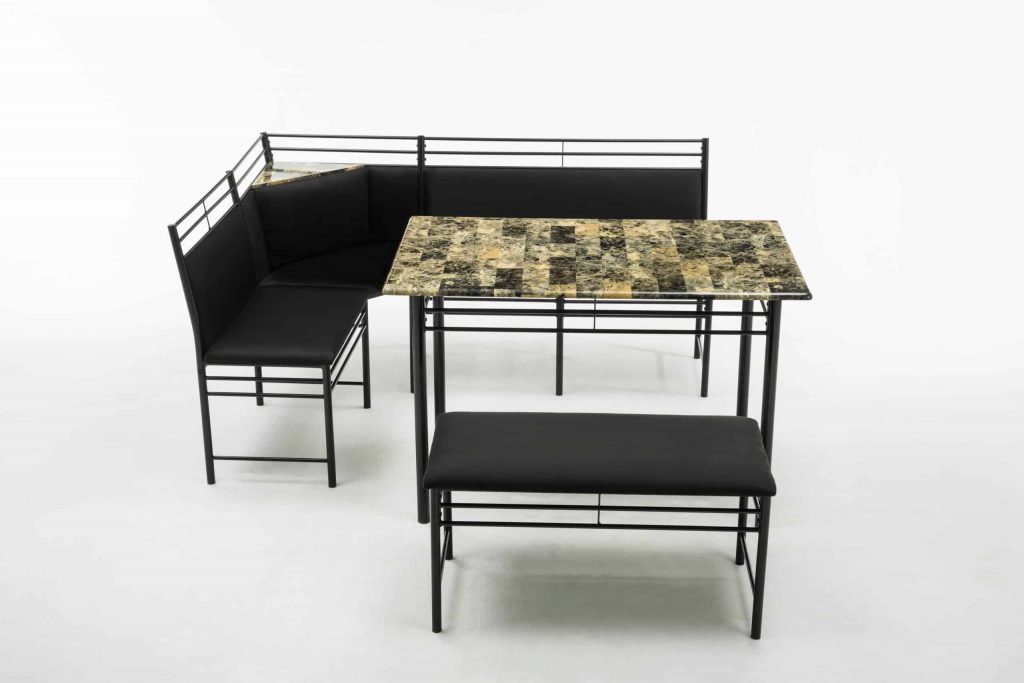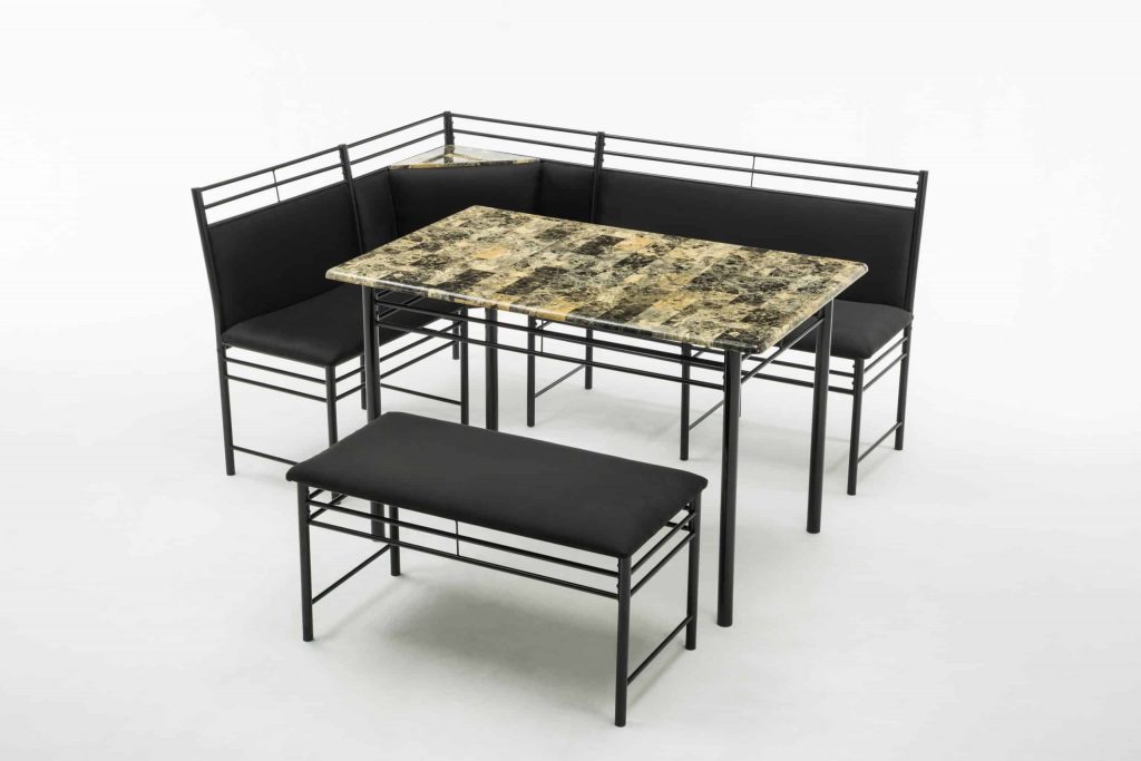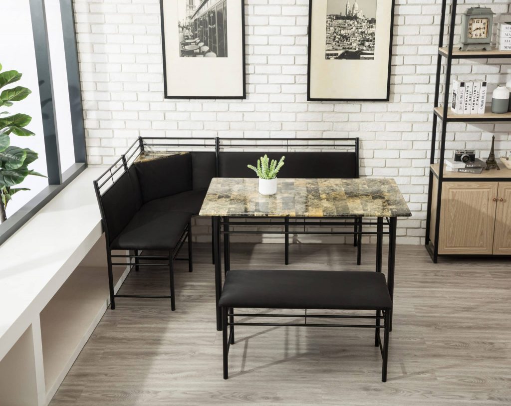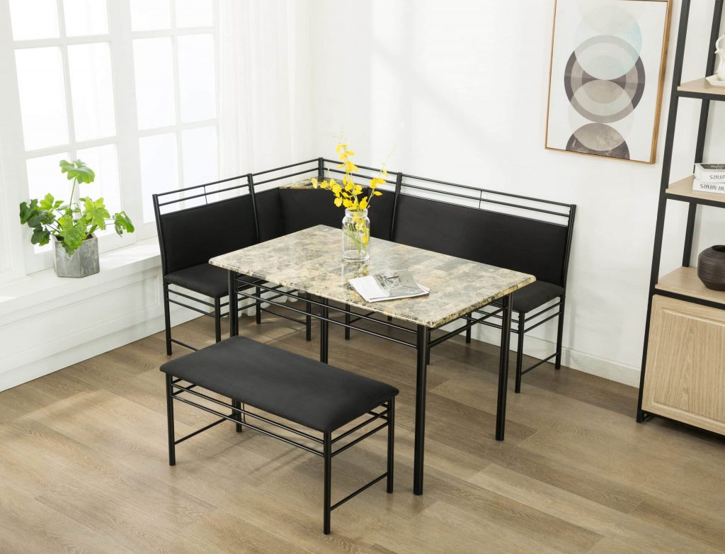 Make the most of your corner space with the cozy Gareth Breakfast Nook Set. This dining set, which includes a rectangular dining table, backless bench, and L chair, provides enough seating for the whole family to gather together. The L-shaped chair fits perfectly in hard-to-use corners, maximizing your square footage. The spacious faux marble tabletop, classic linen upholstery, and durable metal frames make this set a winner.