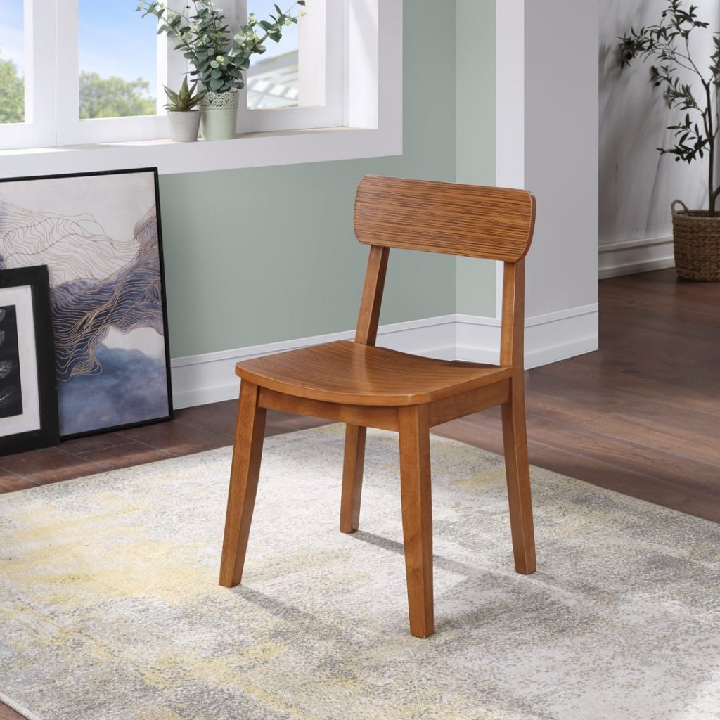 With the Hagen Dining Chairs, mid-century modern design has never looked so fresh. The simplicity of the design is achieved through great attention to detail. Curved backrests and generous seats are shaped to conform to the human body, ensuring a maximum level of comfort every time you sit. Each chair is made from environmentally friendly rubberwood. The seats and backrests are further enhanced with exotic Zebrano wood veneers. They’re finished with a glossy rich walnut stain which enhances the beauty of the natural wood grain. Comes in a set of two matching chairs. Find additional coordinating pieces for your dining room, like the Hagen Dining Table, in Boraam’s Zebra series. *Please note that the listed product weight is for a single chair*