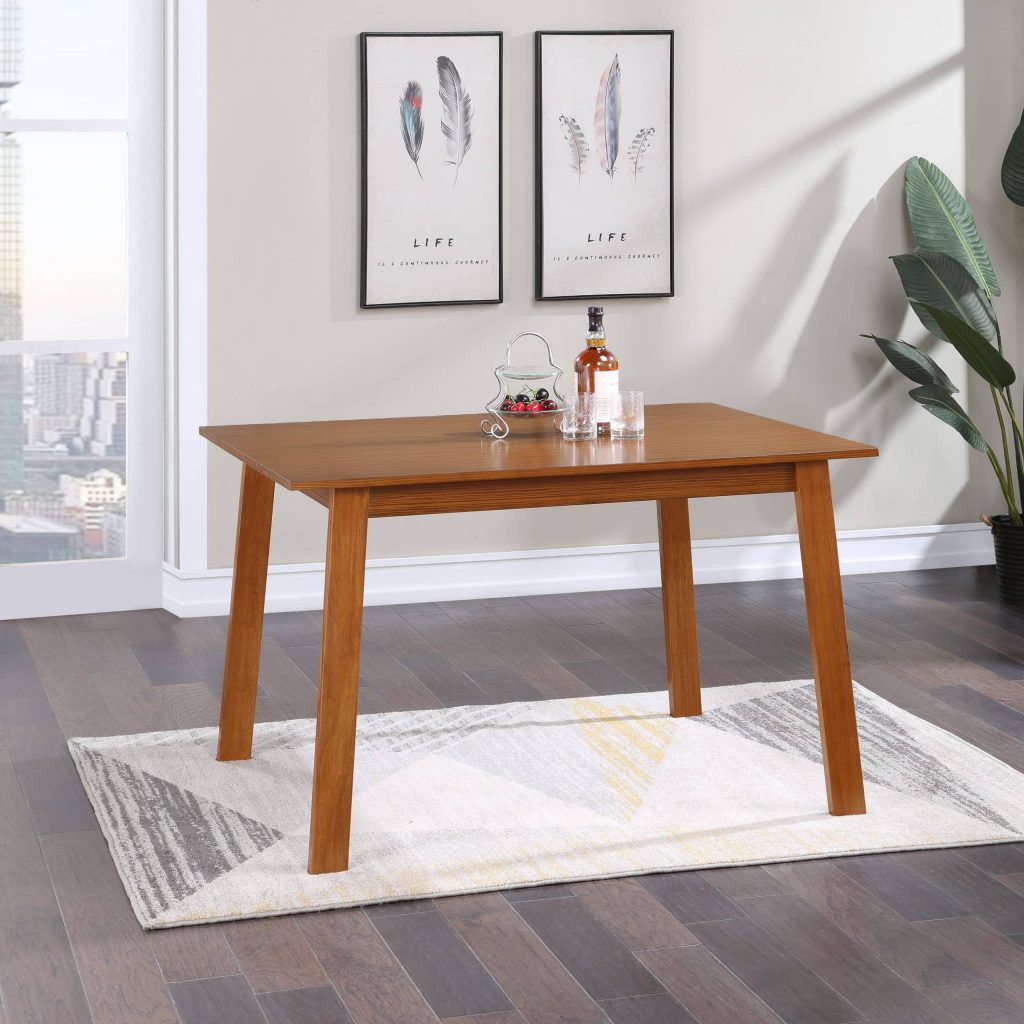 Dine in sophisticated, contemporary style with the Hagen Dining Table from Boraam. This dining table’s straight edges and thick legs combine for a simplicity that still catches the eye. Like the other pieces in Boraam’s Zebra series, the Hagen dining table is built with a rubberwood frame and exotic Zebrano wood veneers. The rich walnut finish is polished to a shine, bringing out the fine grain details in the wood. Up to six guests can fit comfortably around the tabletop. Complete the look with the matching Hagen dining chairs (sold separately by Boraam).