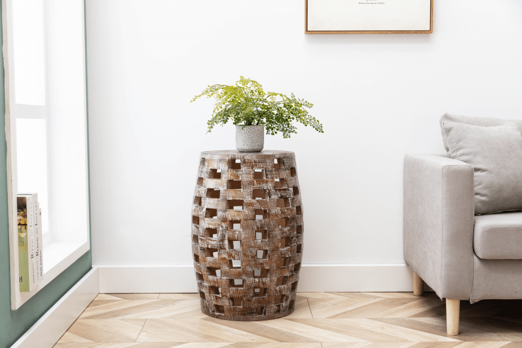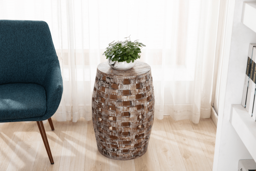 The Boraam Hampton Side Table brings a nice rustic feel into your home. Made to look like a small barrel with a unique hole pattern all around the side, the Hampton Side Table is constructed with pine wood and is available in our weathered walnut finish. It is available in two different heights; 18″ and 26″. These are perfect pieces to bring into your living room and bar area. It will be sure to have your family and friends talking. No assembly is required, The Hampton Side Table is ready to use right out of the box!