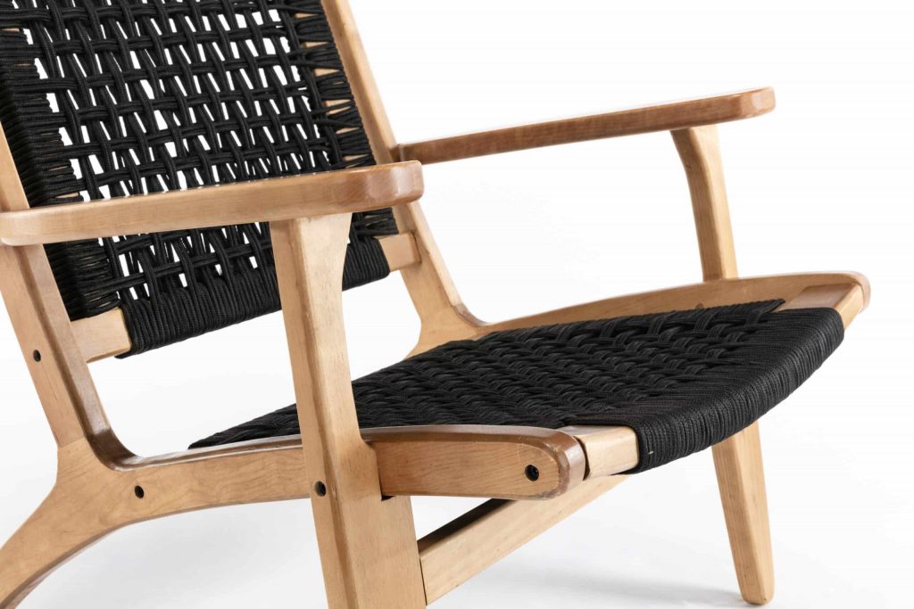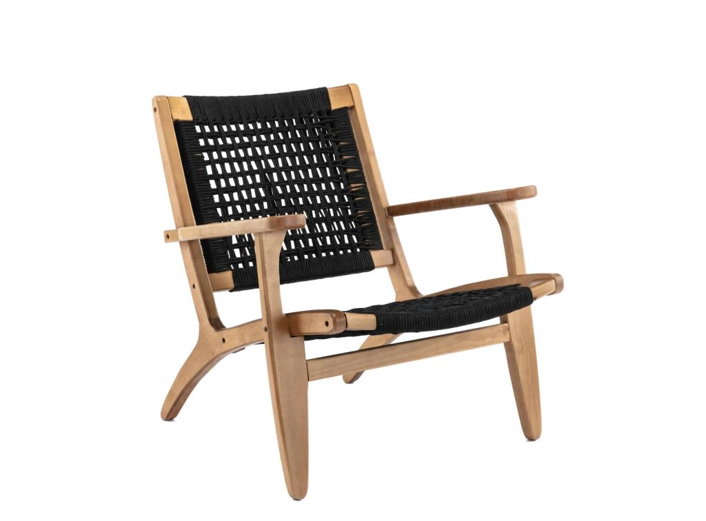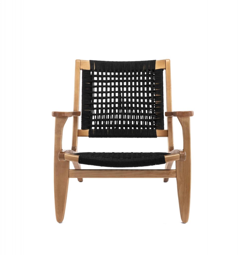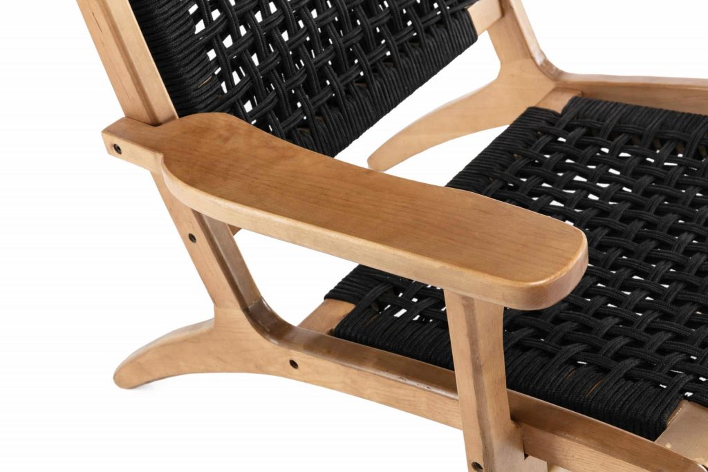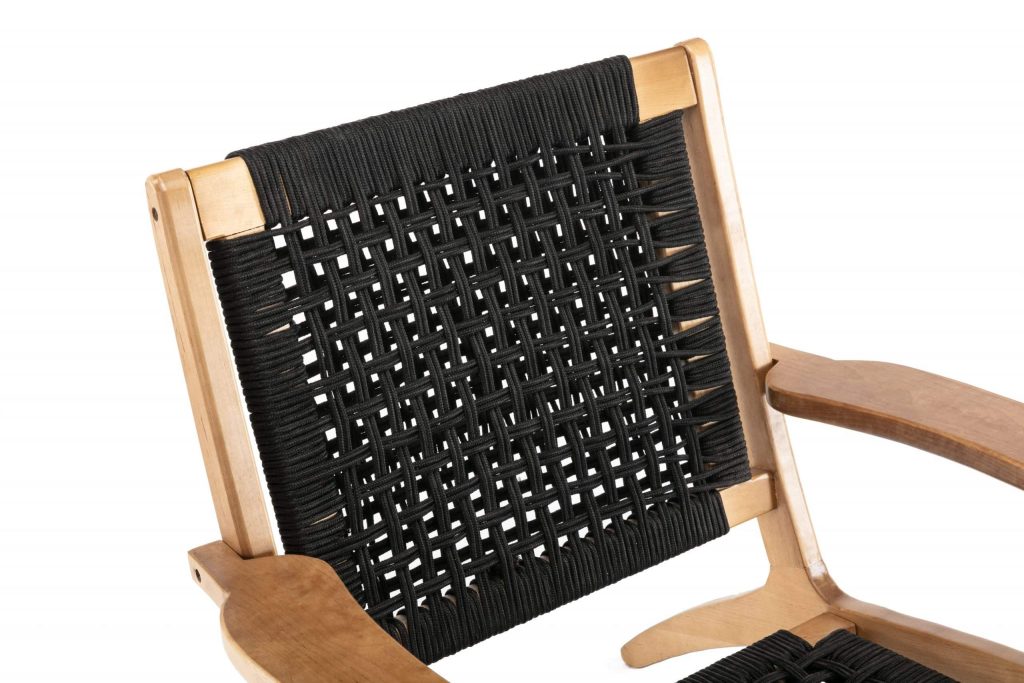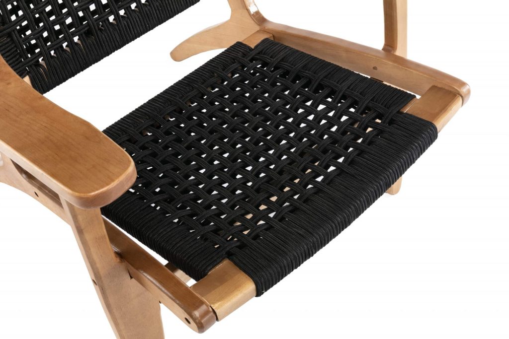 - Rope woven backrest and seat