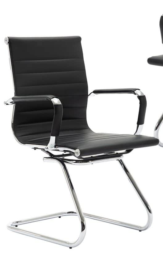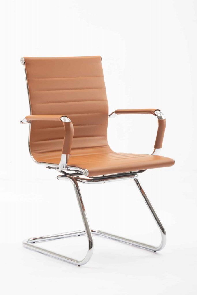 Single pack office chairs available in four finishes; black, gray, terracotta, and white. Constructed with iron frame, PVC, and sponge. Has a sled base and arm rests. Only one chair per carton.