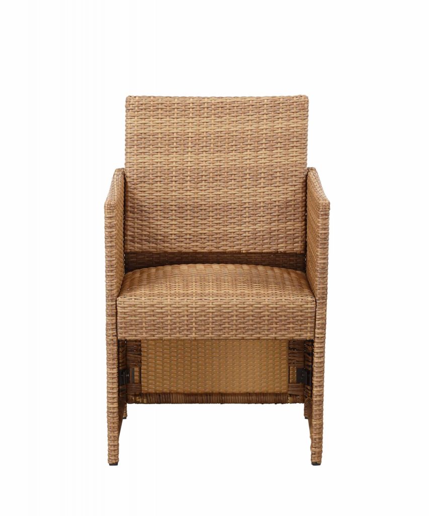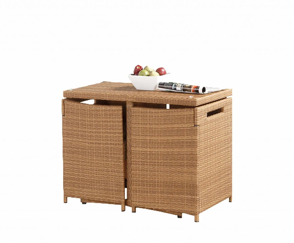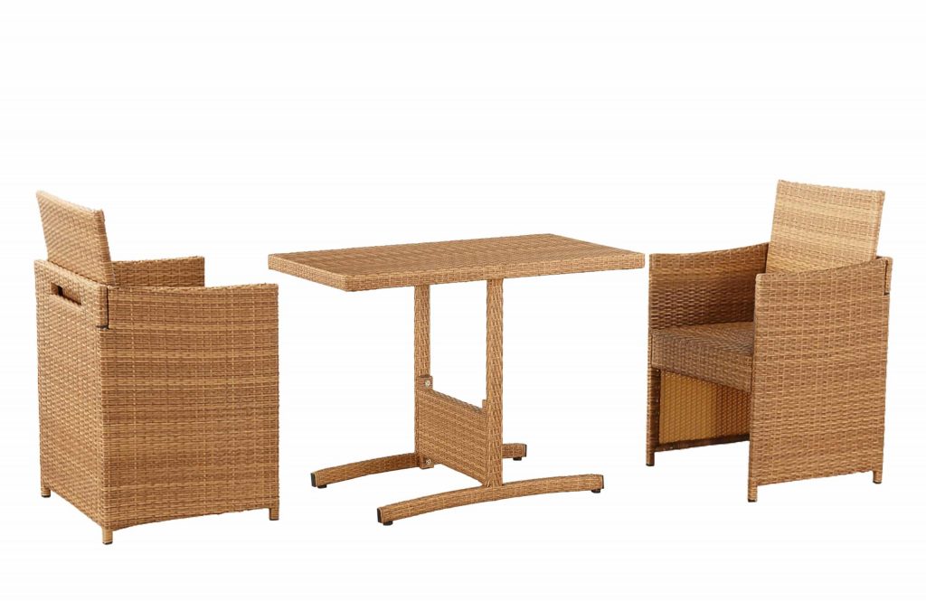 Update your outdoor patio space with our 3pc outdoor dining set that is gracious, stylish, and rich in color. The Honeymoon 3-Piece Outdoor Bistro Set features a woven texture and warm gold oak finish that compliments any outdoor setting. The rectangular rattan dining table set comes with two matching woven rattan chairs for an intimate outdoor dining experience. The Honeymoon dining chairs features foam padding seat for a relaxing, comfortable seating. Each chair backrest folds so they easily slide underneath the table, making it the perfect piece for those small patio, cozy-up-too areas. Durably designed to withstand unfavorable weather conditions, making this functional set great for your outdoor living space year-round. Whether you’re feeling sociable or want to enjoy the sunshine, this table and chair ensemble offers a comfortable place to gather.