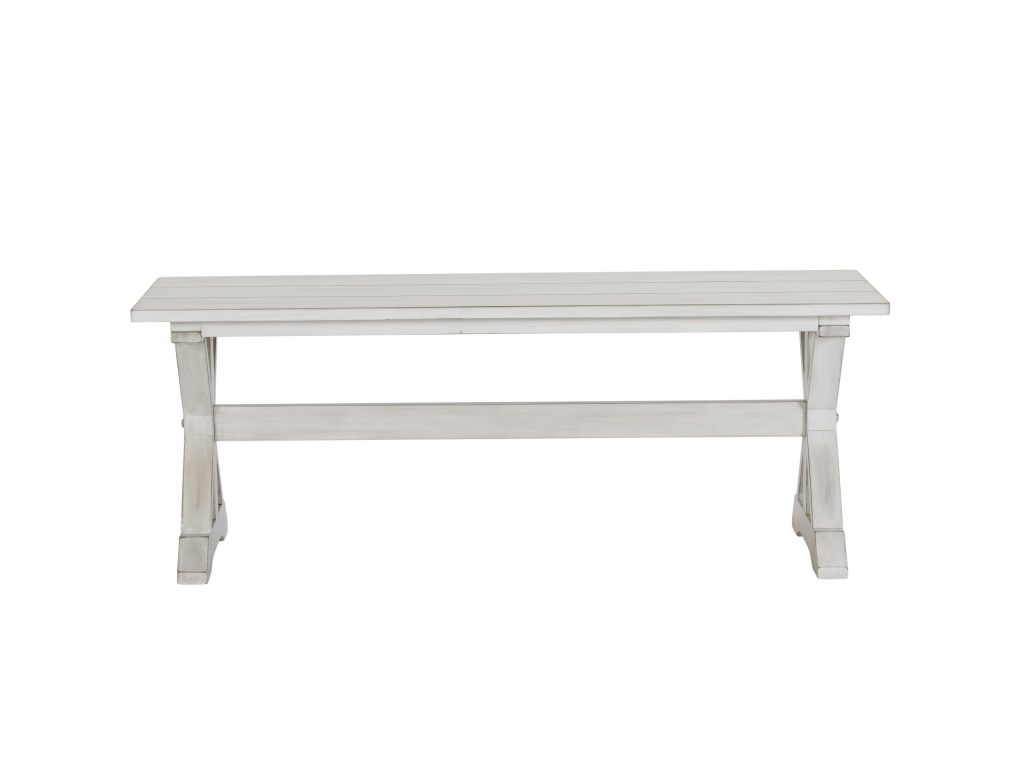 - This dining room bench features a beautiful antique white finish. Its versatile design exudes timeless elegance and effortlessly complements a variety of home decor styles.
