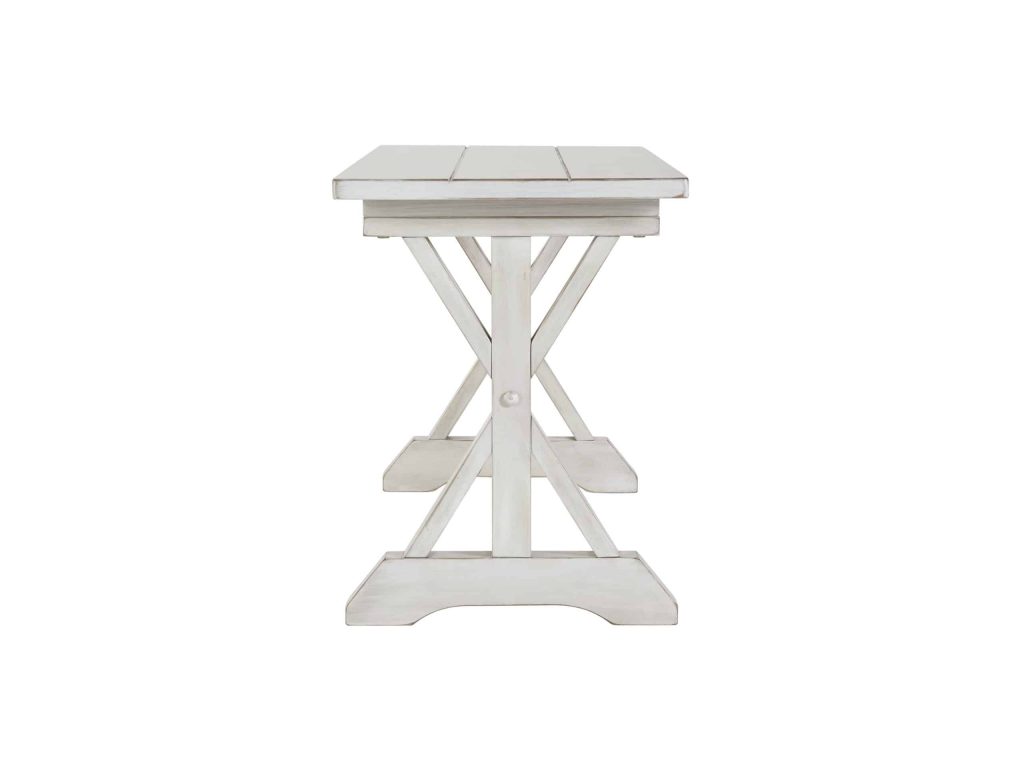 The Boraam Jamestown Dining Bench is dripping with quaint farmhouse charm. This plank-style bench and its trestle base are constructed from a combination of solid wood and medium density fiberboard. Everything is then coated in a antique white finish, which adds a charming vintage effect. Easy assembly is required – tools and hardware come included. Be sure to pair this bench with the matching Jamestown Dining Table and Dining Chairs from Boraam.
