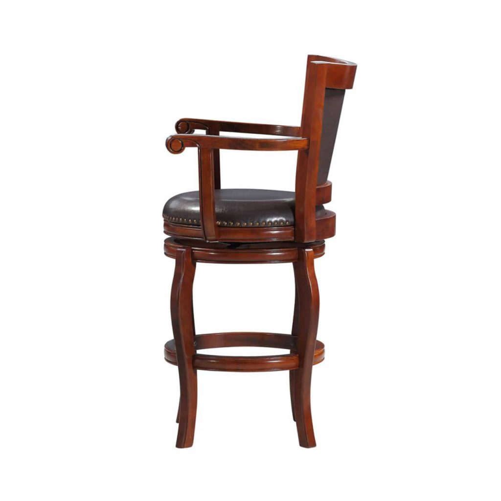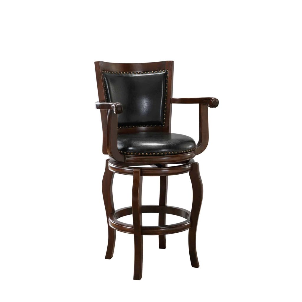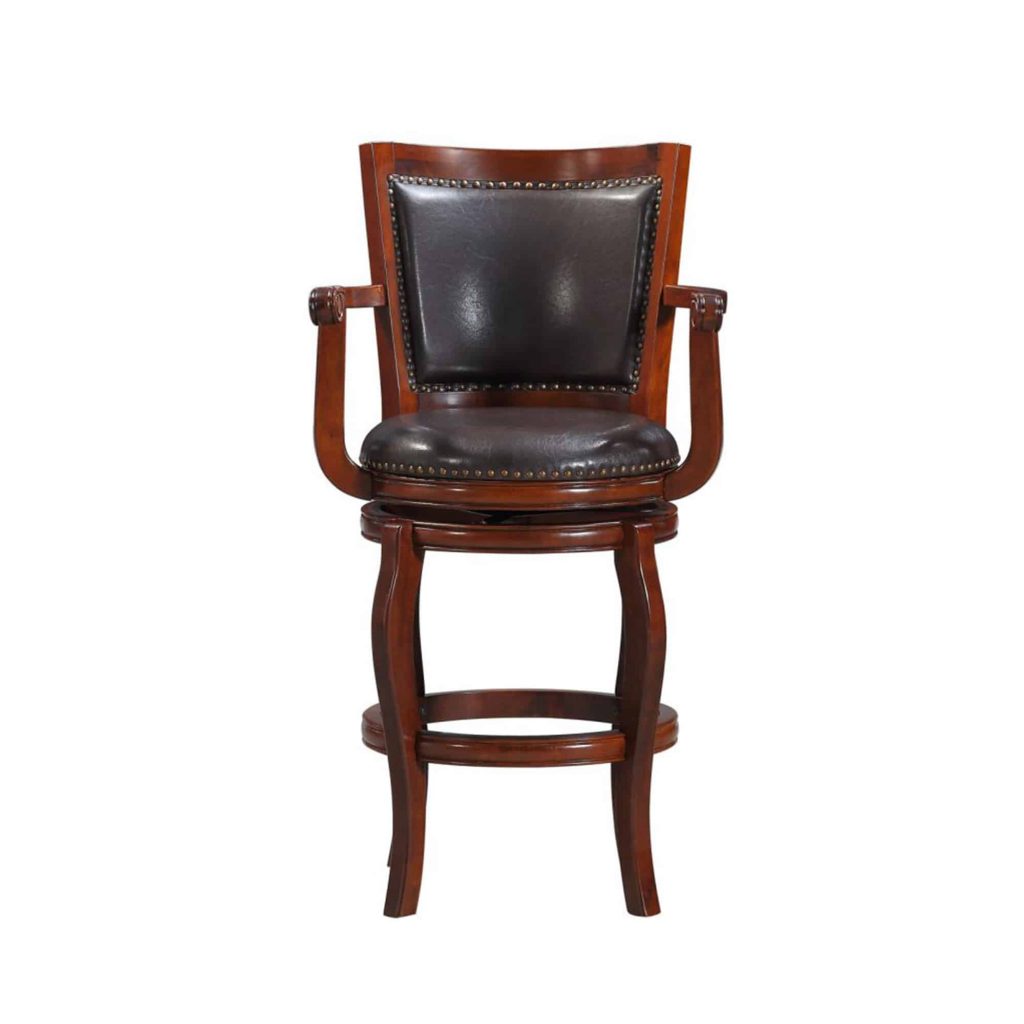 Discover the unmatched comfort of the Jones Bar Height Swivel Stool—a true masterpiece among barstools! You may find yourself sinking into its plush seat long after the last guest has left. With a convenient swivel feature, this stool allows you to effortlessly transition your gaze from the bar or pub table to engage with the entire room. Crafted from solid hardwood with exceptional precision, it promises durability and style. The high-density foam seat and backrest, enveloped in luxurious faux leather upholstery, not only enhances comfort but also makes cleaning a breeze—perfect for addressing any drink or snack mishaps. Plus, the protective floor glides ensure your hard floors remain scratch-free. Elevate your space with this perfect blend of comfort, practicality, and elegance!