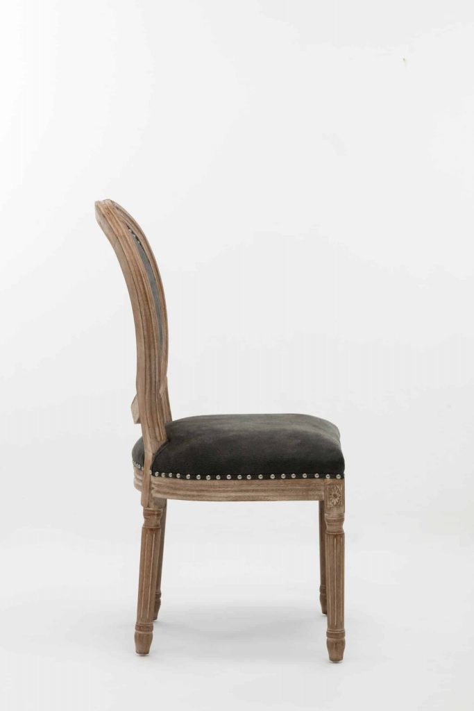 The Joy Dining Chair is the perfect expression of your love for elegant, vintage style. With its classic oval backrest, fluted legs, nail head trim, and soft fabric upholstery, the chair adds luxury to any dining area. This set includes two matching Joy Dining Chairs. Please note: Product weight listed on site is for a single chair.
