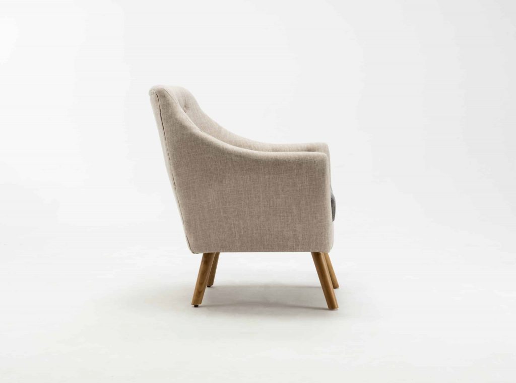 The Kara Arm Chair wouldn’t look out of place in a sophisticated 1960s living room. With its two-tone color combination, flared legs, and barrel design, this arm chair is a stunning example of refined mid-century modern style. This contemporary piece comes shipped in one box, ready to assemble.