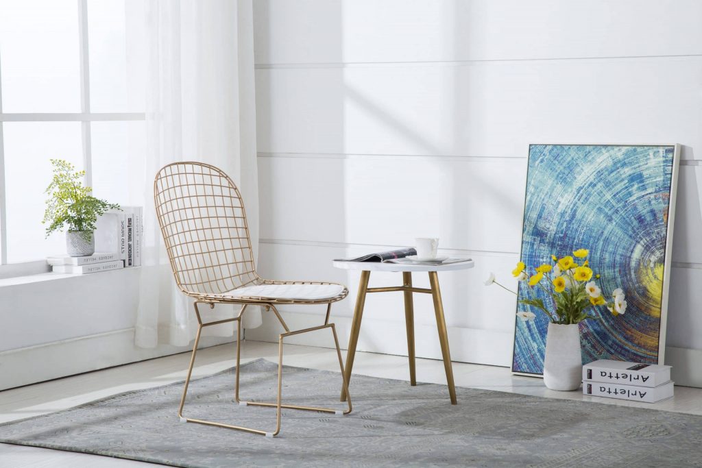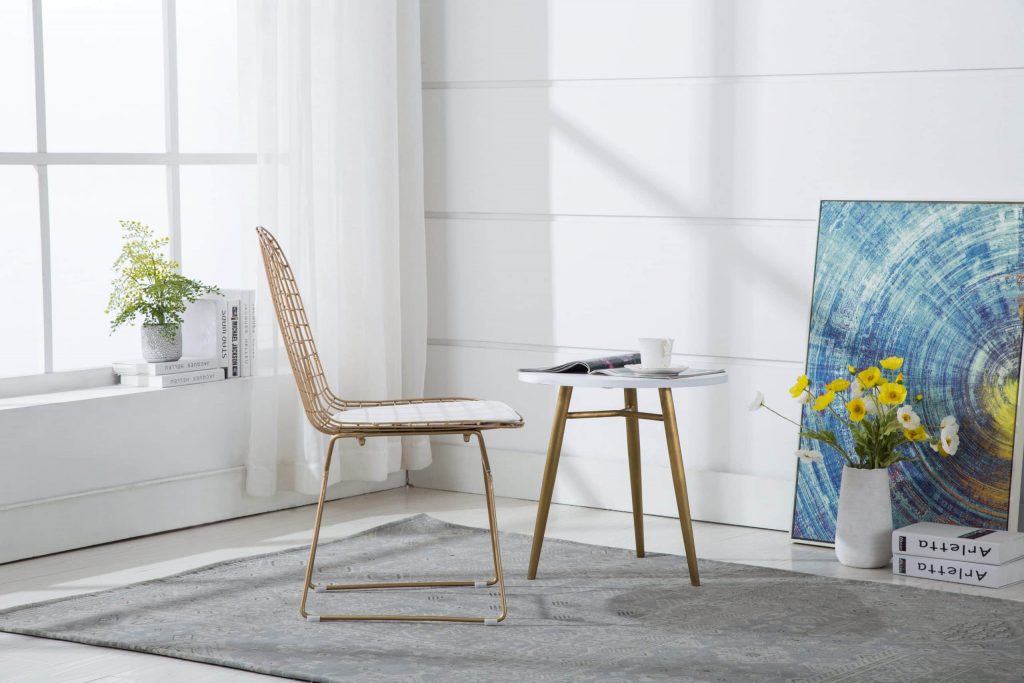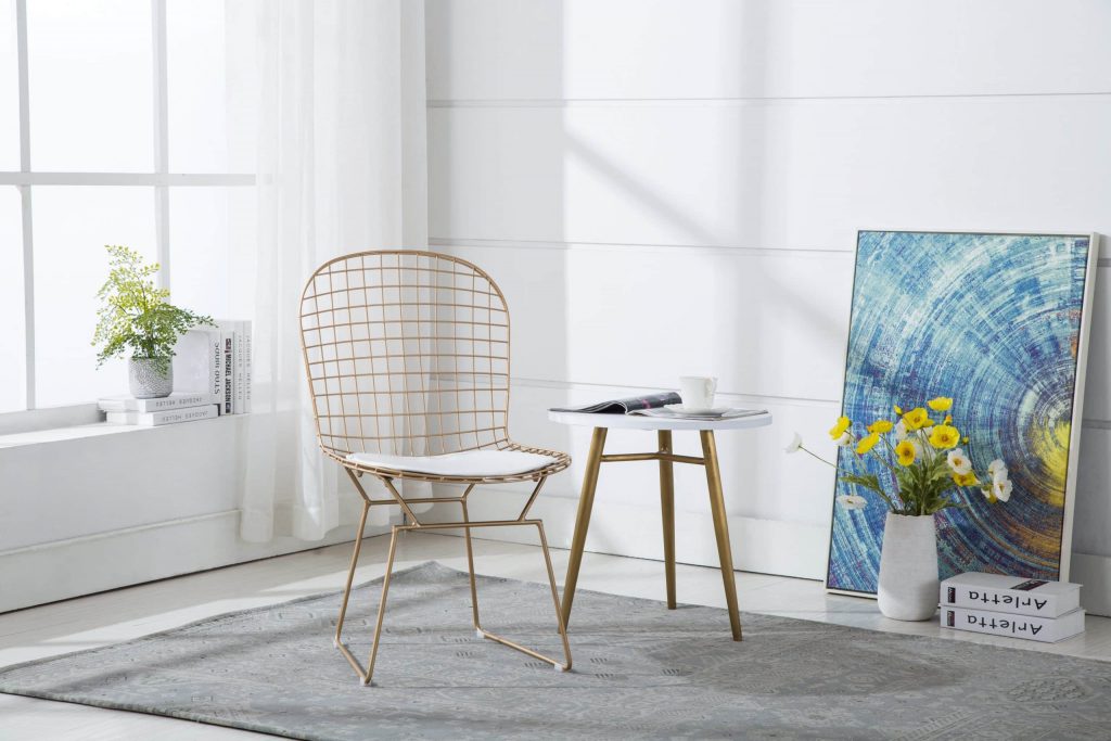One of the items we are bringing in at Boraam is the Lawrence Side Chair. It is constructed with metal and a PU padded seat for comfort. It is currently available in two finishes; black metal and gold chrome. It is made in China. The Lawrence Side Chair comes as a set of 2.