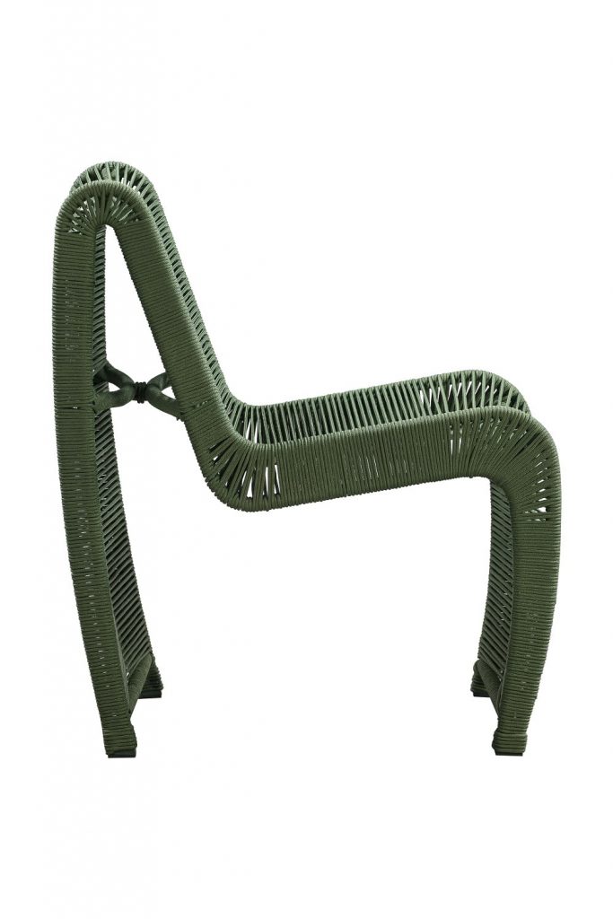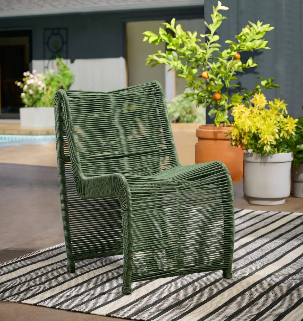 - The Lorenzo chairs are available in black, olive green, or tan rope