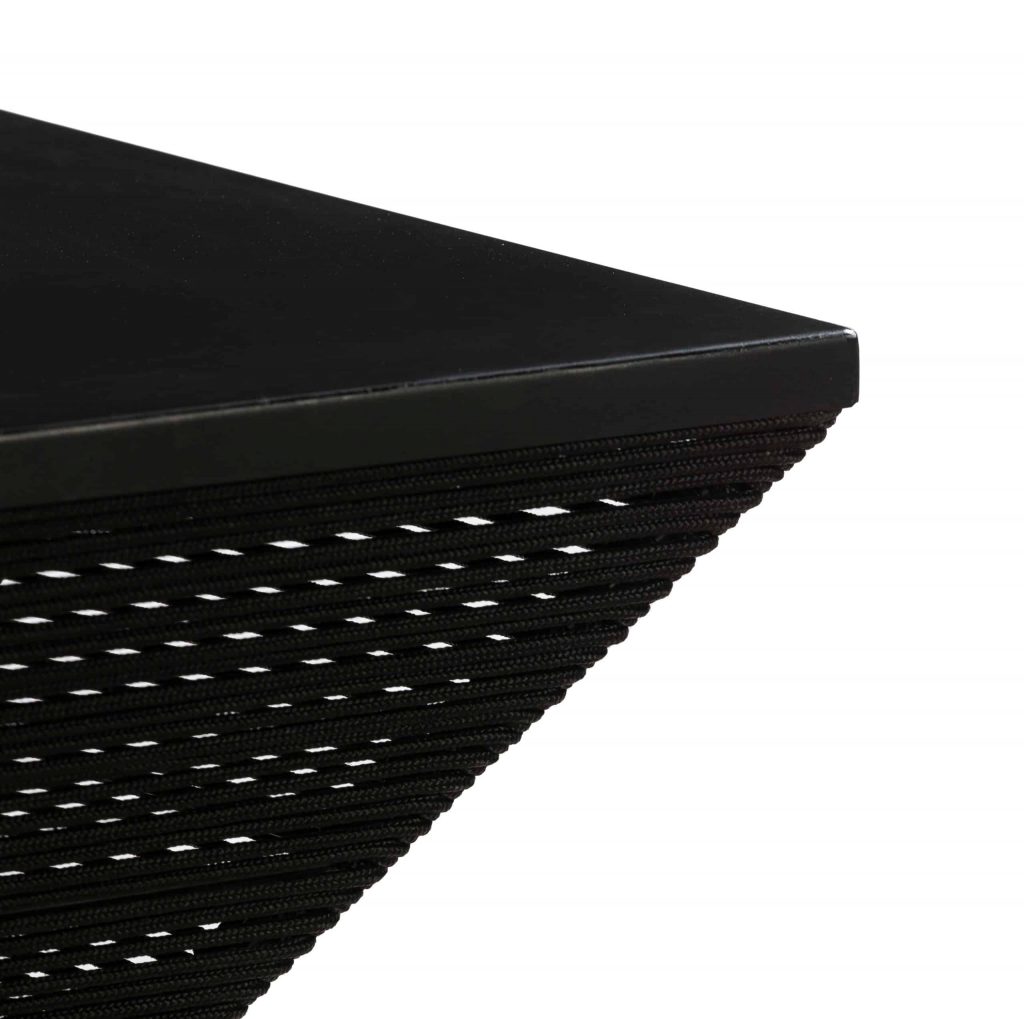- This pub table is constructed with lightweight rope woven around a black powder coated iron frame. This provides a highly durable structure that can hold a substantial amount of weight