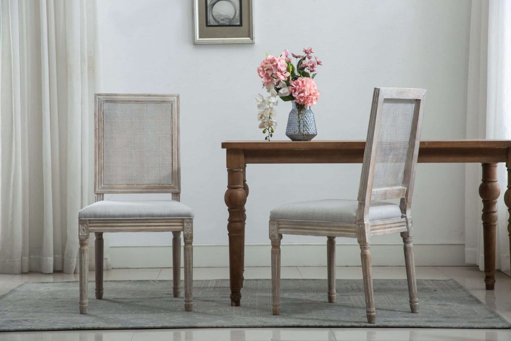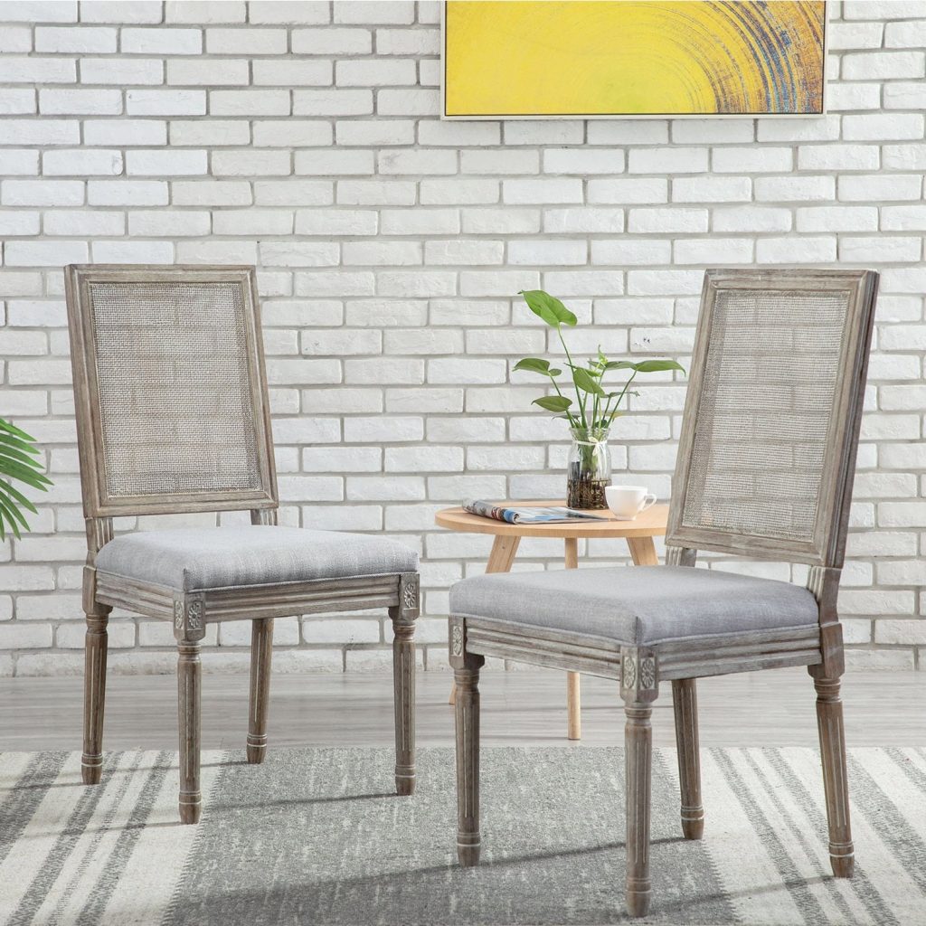 Dining chair, set of 2, rubberwood and polyester, beige and gray finishes