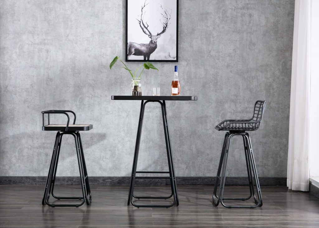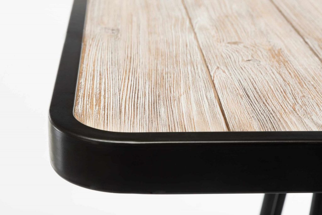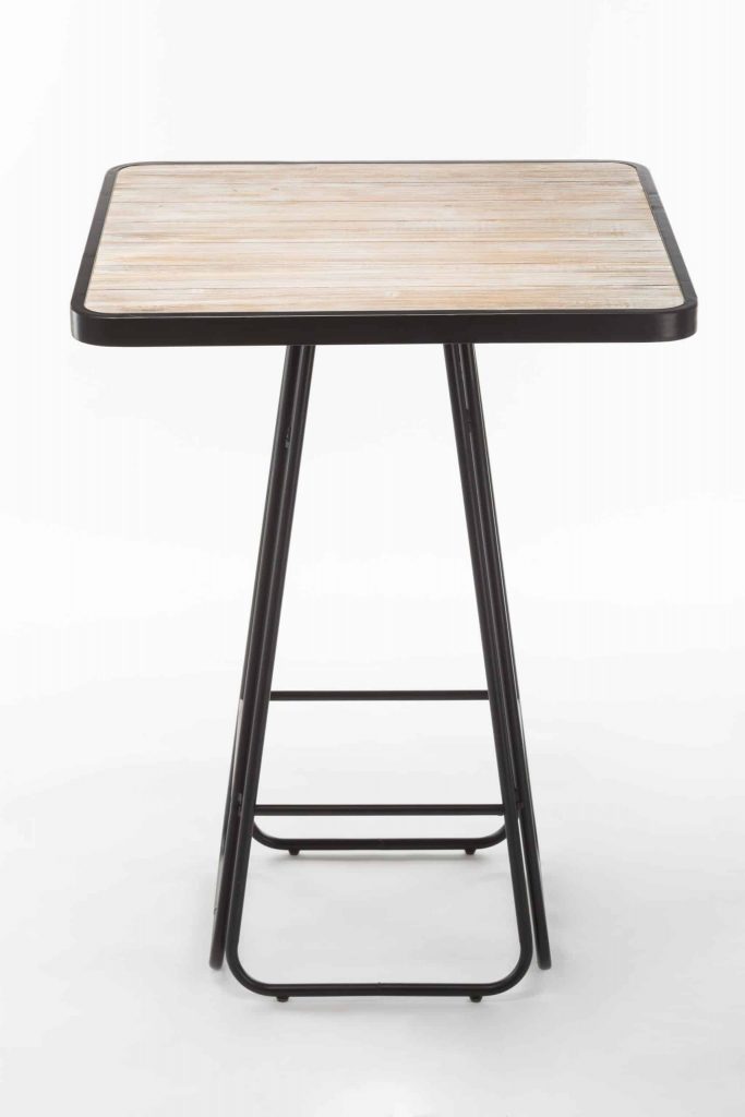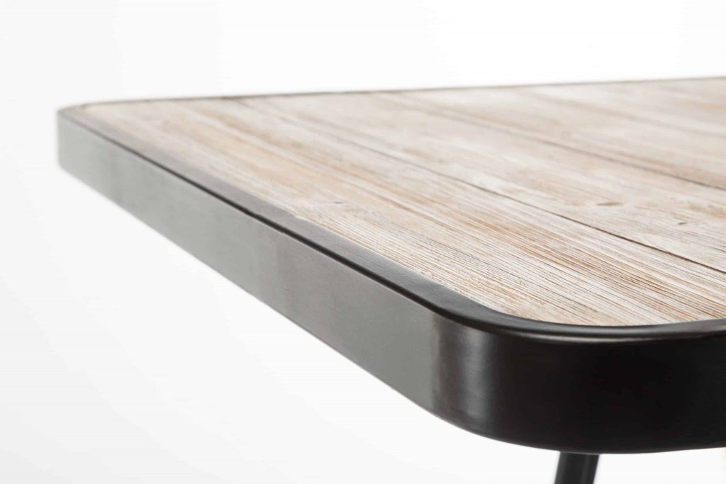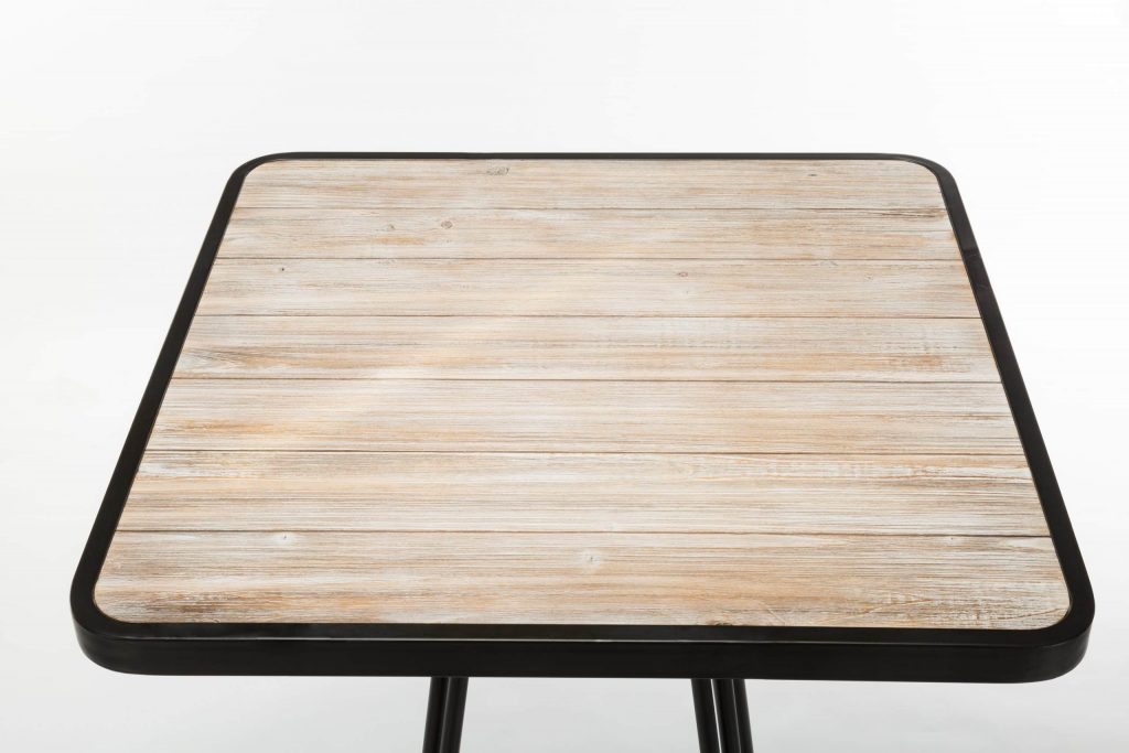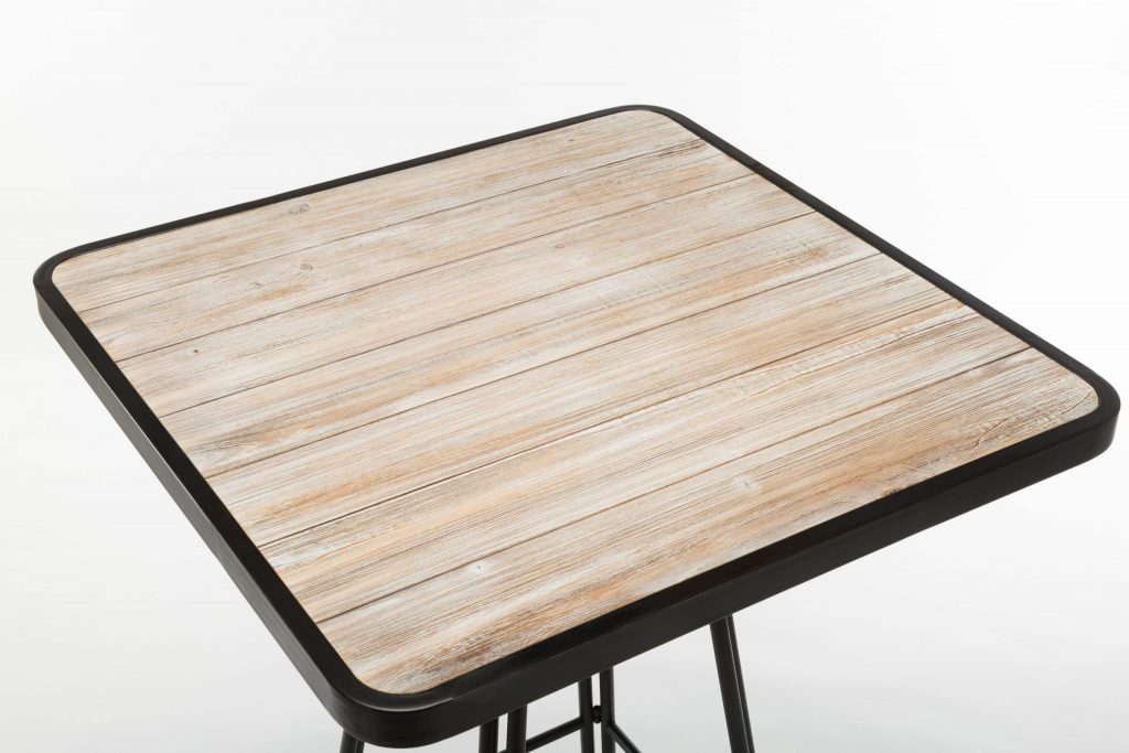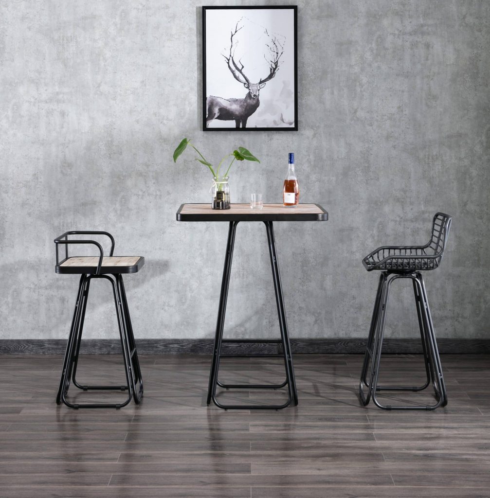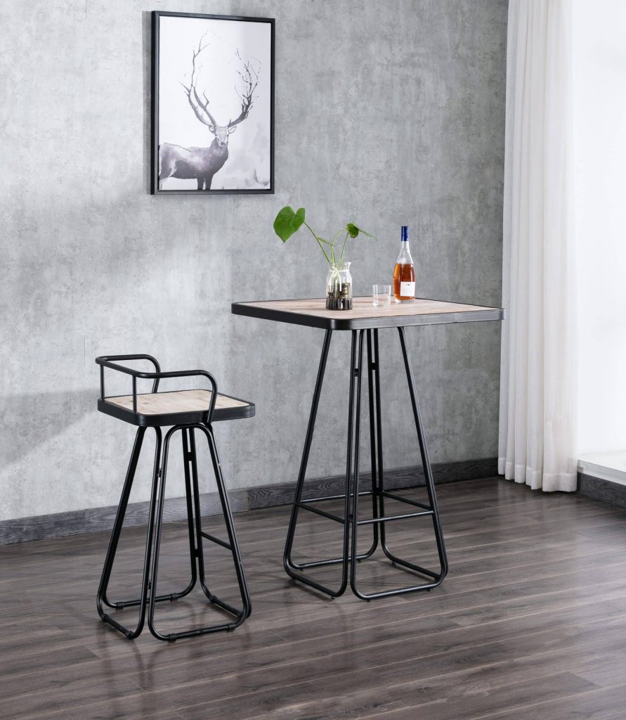 This metal and fir wood pub table has a natural grain fir wood table top and a metal antique gray frame. This table is perfectly paired with the matching fir wood and metal chairs. This table comes out of China.