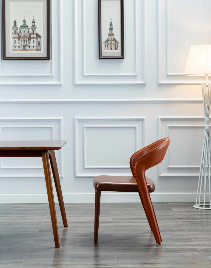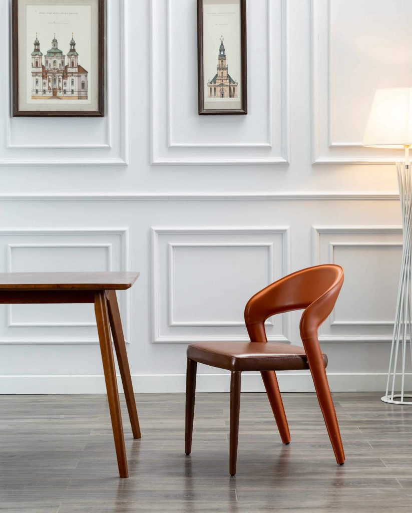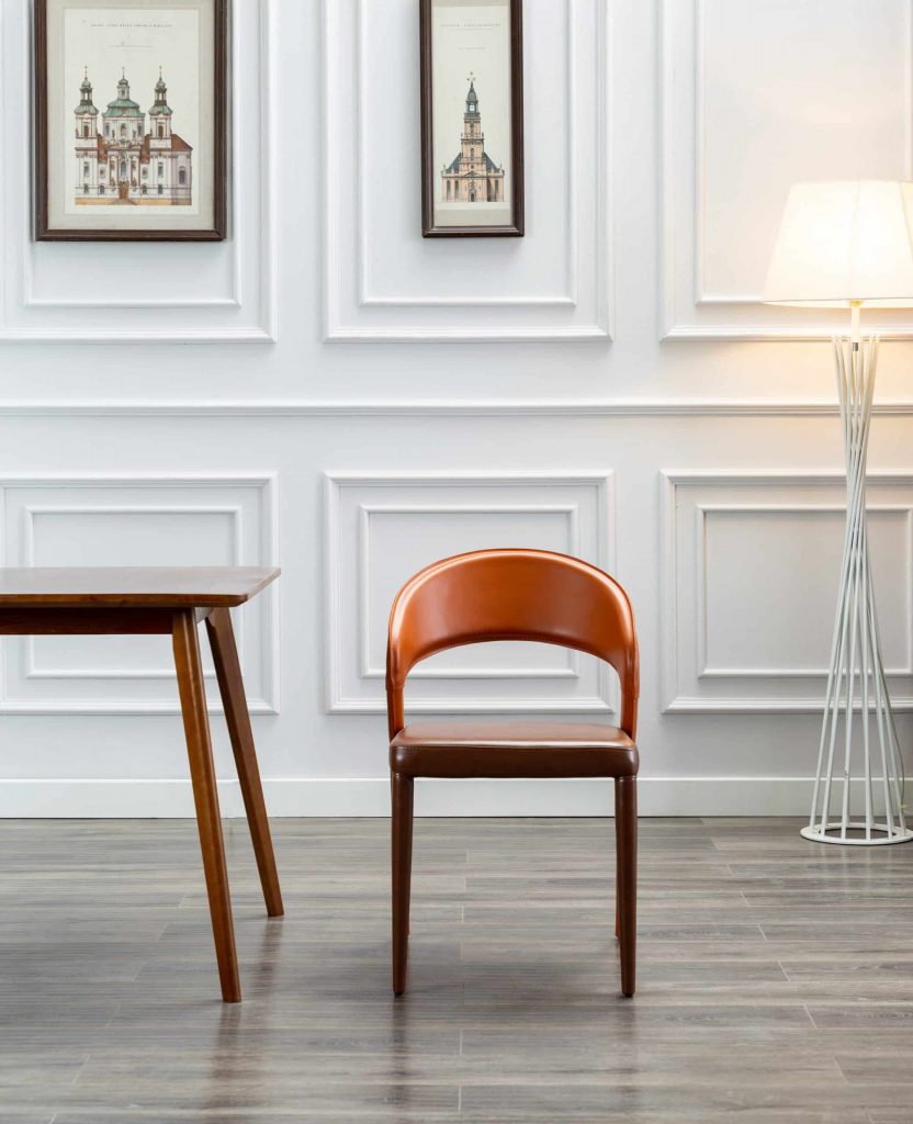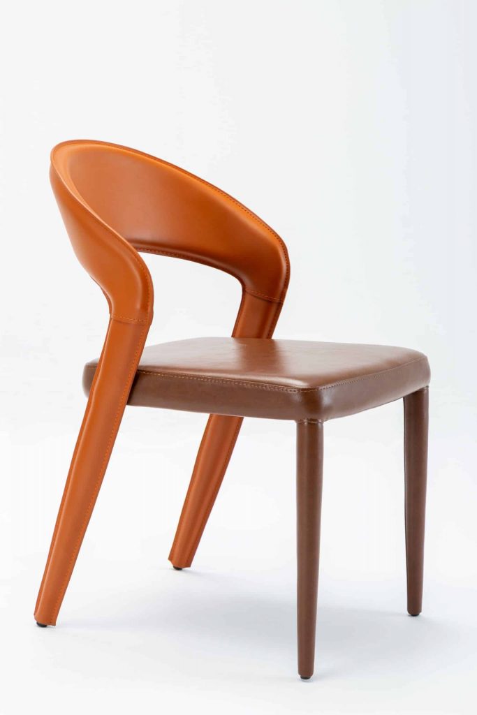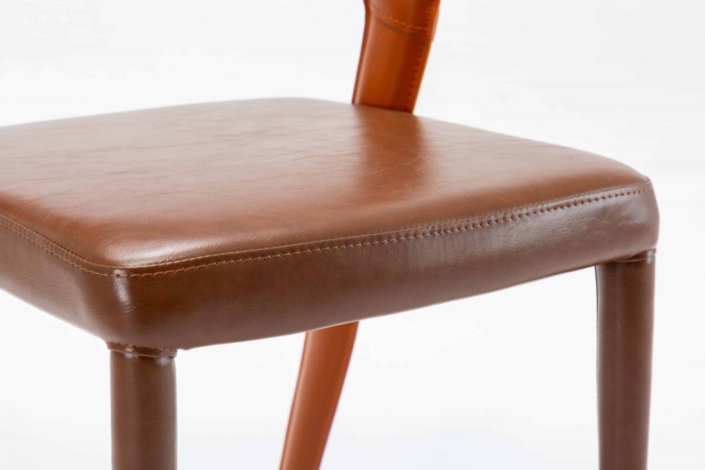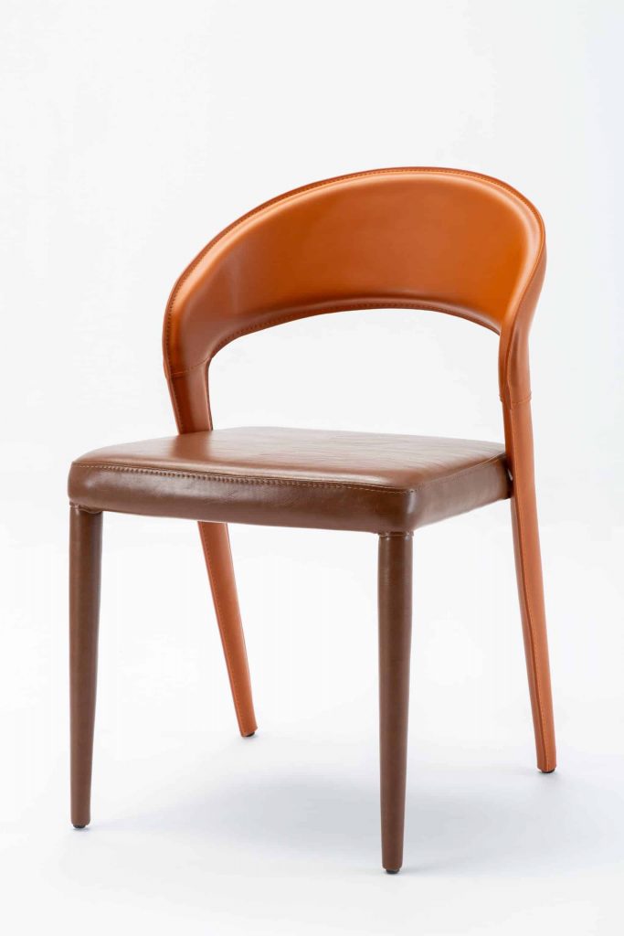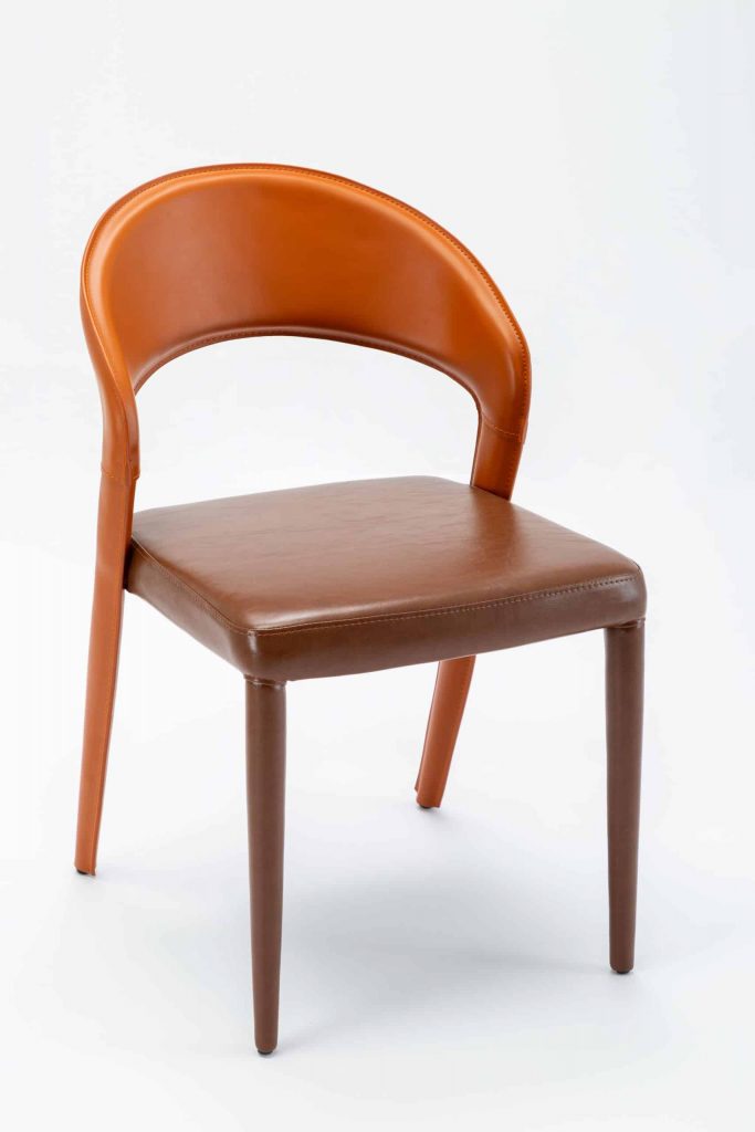 This great dining chair fits in well with any dining area. It has bonded leather PU and metal frame. It comes in a brown black and orange color. This item is a dining height chair. This item comes out of China.