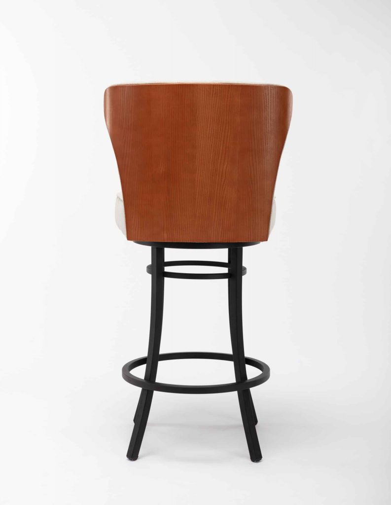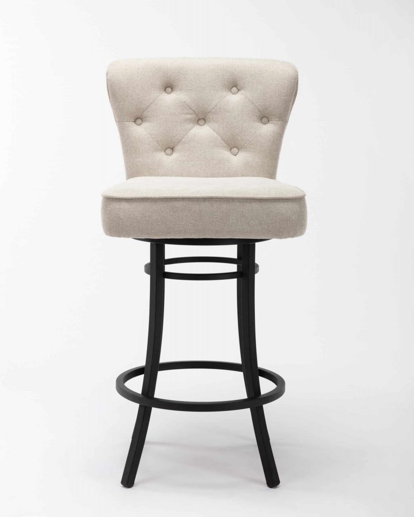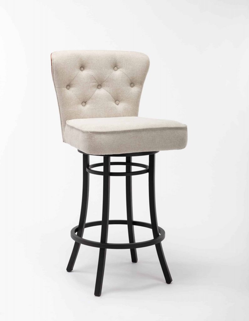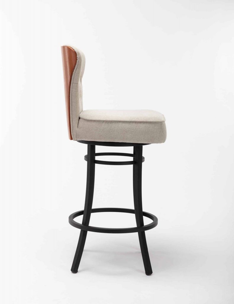 This beautiful bar stool will fit in perfectly into any home. With a metal black frame and an off white fabric finish, this stool looks great and is even more comfortable. The unique back of this stool is made with a bentwood finish. This stool is made of metal, wood and fabric. This item comes out of China.