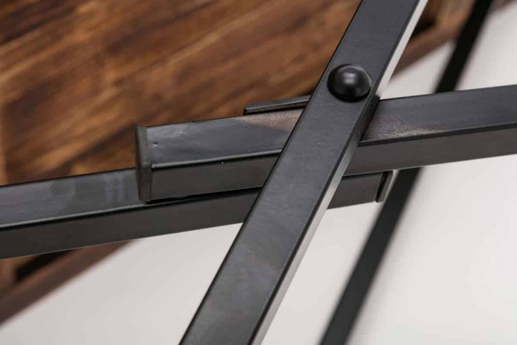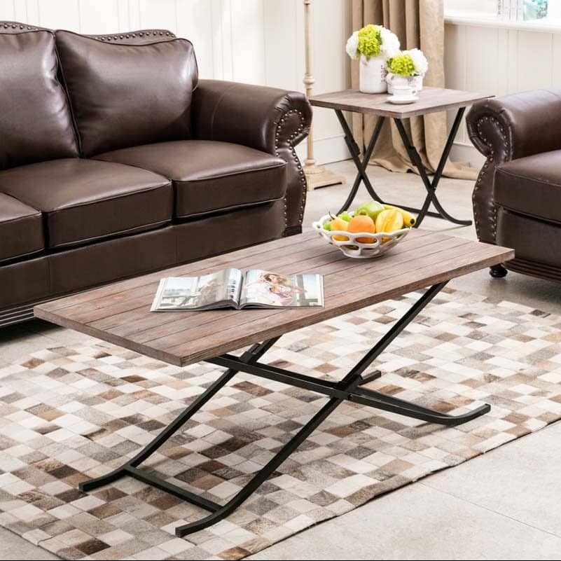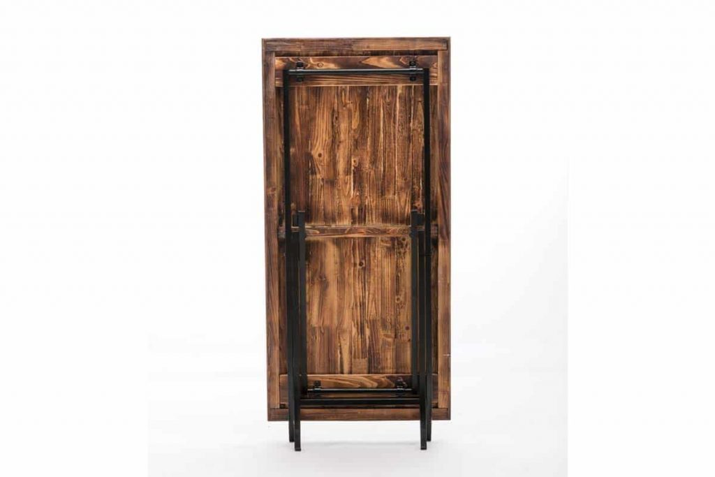 The Miriam Cocktail Table’s weathered fir wood tabletop brings warmth and organic style to your living room. This wooden coffee table rests on black iron legs, creating a delightful contrast of materials and colors. The legs fold up for easy moving or storage. Outfit your living room with the matching Miriam End Table (available sold separately).