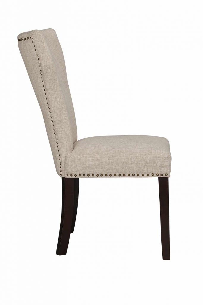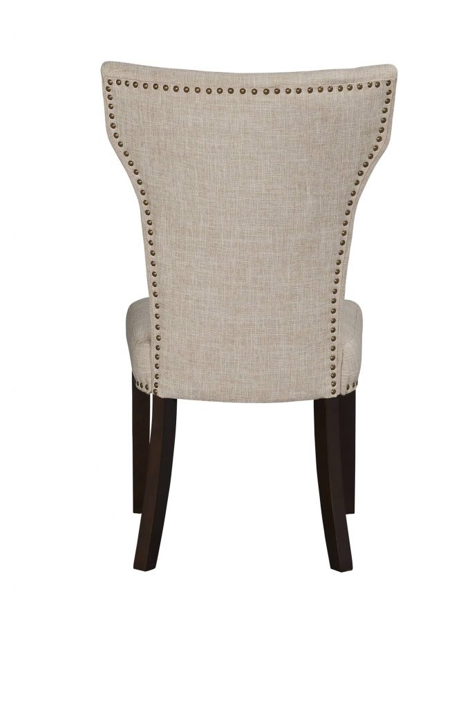 An intriguing take on a traditional Parsons chair, the Monaco Parson Dining Chair features a unique geometric backrest. The design is coupled with decorative brass nailhead trim over linen upholstery. Solid wood legs end in protective glides to prevent scratches or other damage to your hard floors. Comes in a set of two side chairs. Please note: Product weight listed on site is for a single chair.