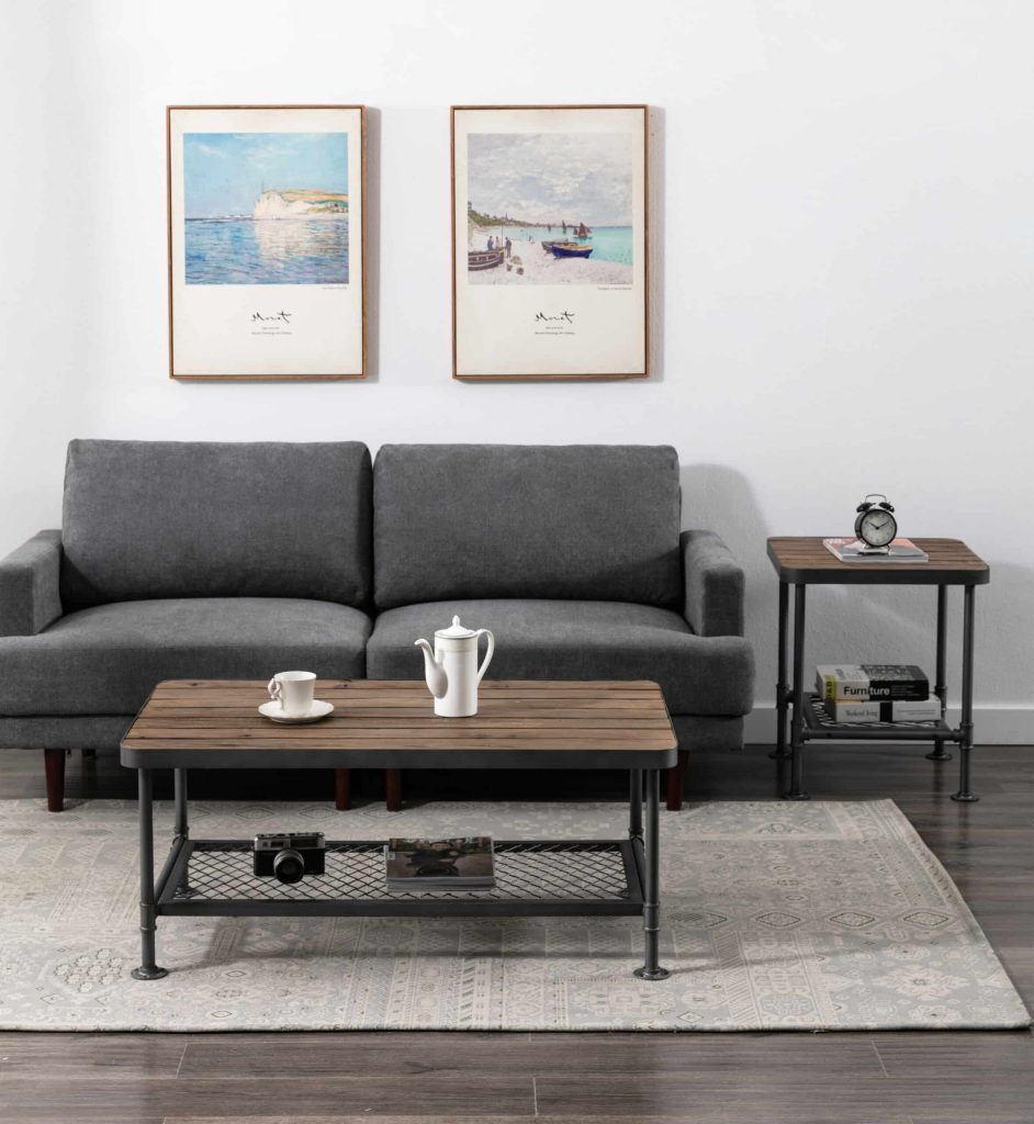 No better way to decorate your living room than bringing in the Newport Coffee Table. Made with a gray metal frame base and a natural fir wood top, the Newport Coffee Table has an industrial and tough look to it. The four legged frame also has small base like feet to ensure you are getting a sturdy table. The bottom shelf even looks like a chain link fence. Also pairs nicely with out Newport End Table (sold separately). All tools and assembly instructions are provided to ensure easy and quick assembly.