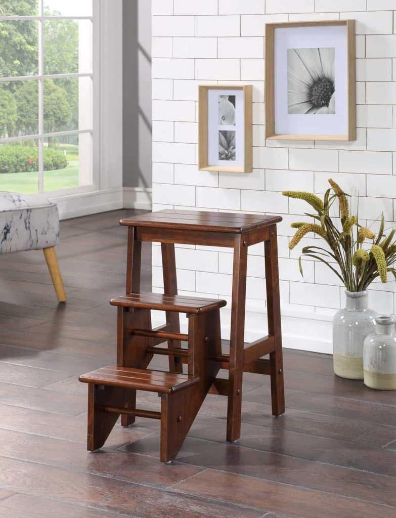 It’s time to step up your stool game with the Boraam Niko Step Stool. Crafted from solid hardwood, this stool is an attractive and functional piece of furniture. A safety latch ensures secure use when you’re reaching for those high cupboards and shelves. This three-level step stool can easily fold up for out-of-the-way storage when it’s not actively being used. However, you don’t have to hide away the stool in a closet! Instead, decorate it for display with picture frames and small potted plants.