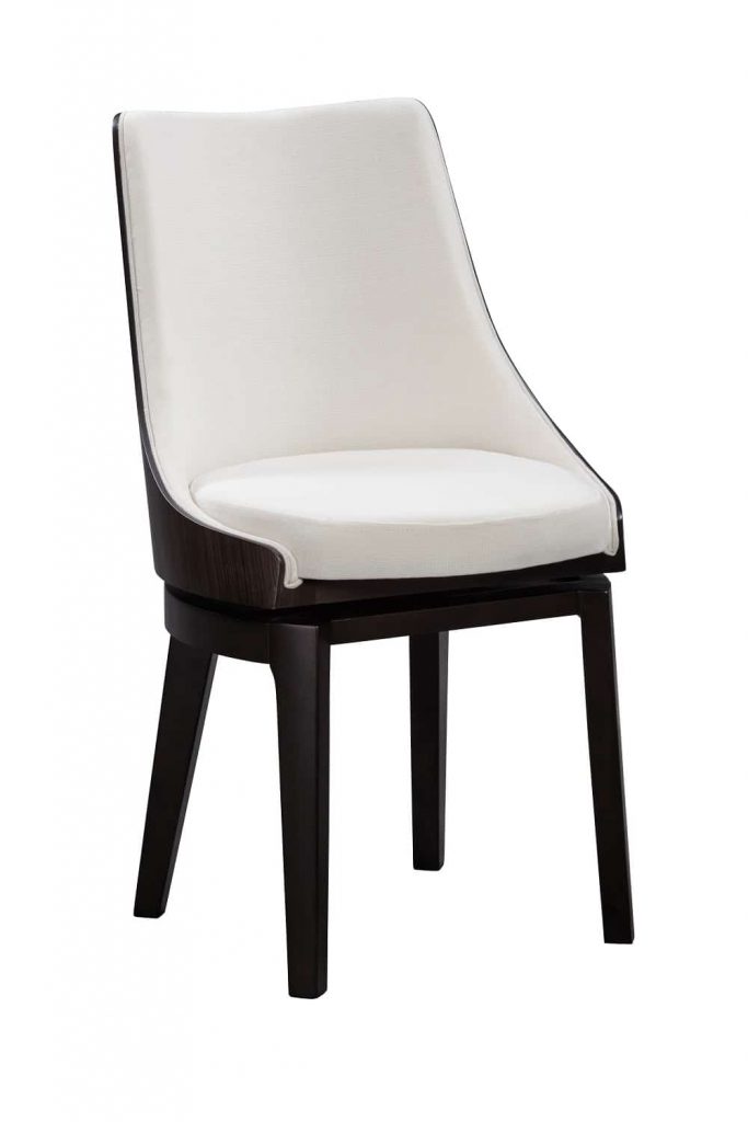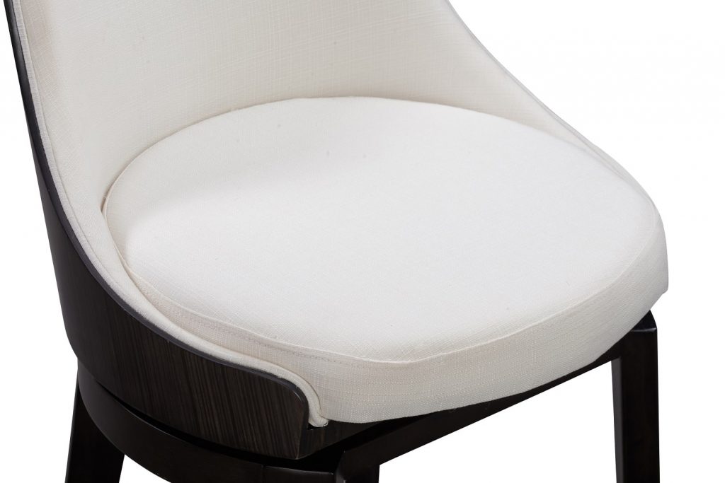 Elegant and eye-catching, these stunning Orleans Swivel Dining Chairs from Boraam Industries are the perfect addition to any space and will brighten your home! The soft curves of the Zebrano wood veneer of this dining chair highlight the elegant cream fabric upholstery, inviting you to linger at the dining table for as long as you want. The 360° swivel feature allows you to easily get in and out of the dining table without having to pull the chair out every time – providing convenience for daily life. High density foam cushion seat and back and the soft, rounded edges give these chairs a sculptural aesthetic that makes them a welcome addition to your home. Great for dining rooms, but so versatile that it can fit in almost every room of the house. The Orleans dining chairs comes as a set of 2.