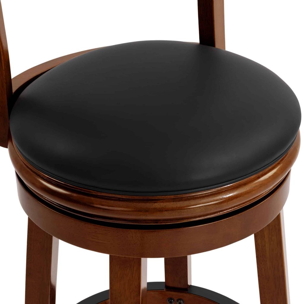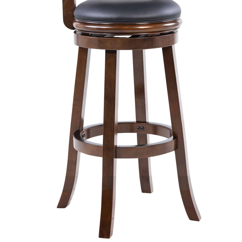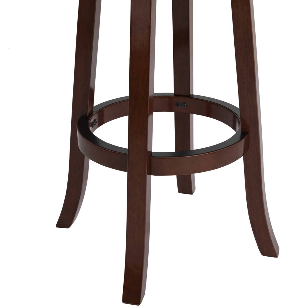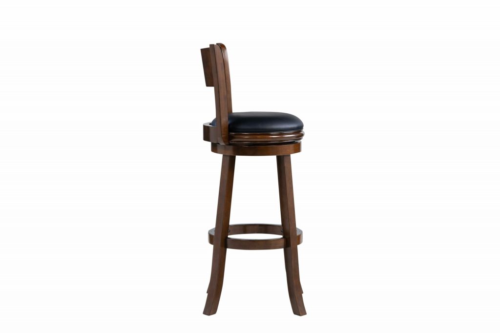 The Palmetto Extra Tall Swivel Stool is the next evolution of comfortable pub seating. Not only is this traditional swivel stool crafted with a built-in backrest, footrest, and high-density foam cushioning, but it also comes with support and durability features to last you a long time. Flared legs, a double-seat apron, stability stretchers, and a steel ball-bearing swivel mechanism all promise longevity. Not to mention, the Palmetto is also performance tested by leading worldwide testing facilities. The solid rubberwood frame is finished in beautiful cappuccino finish, and plush faux leather seating. Plus, its armless design means you can slide this stool underneath your countertop when not in use.