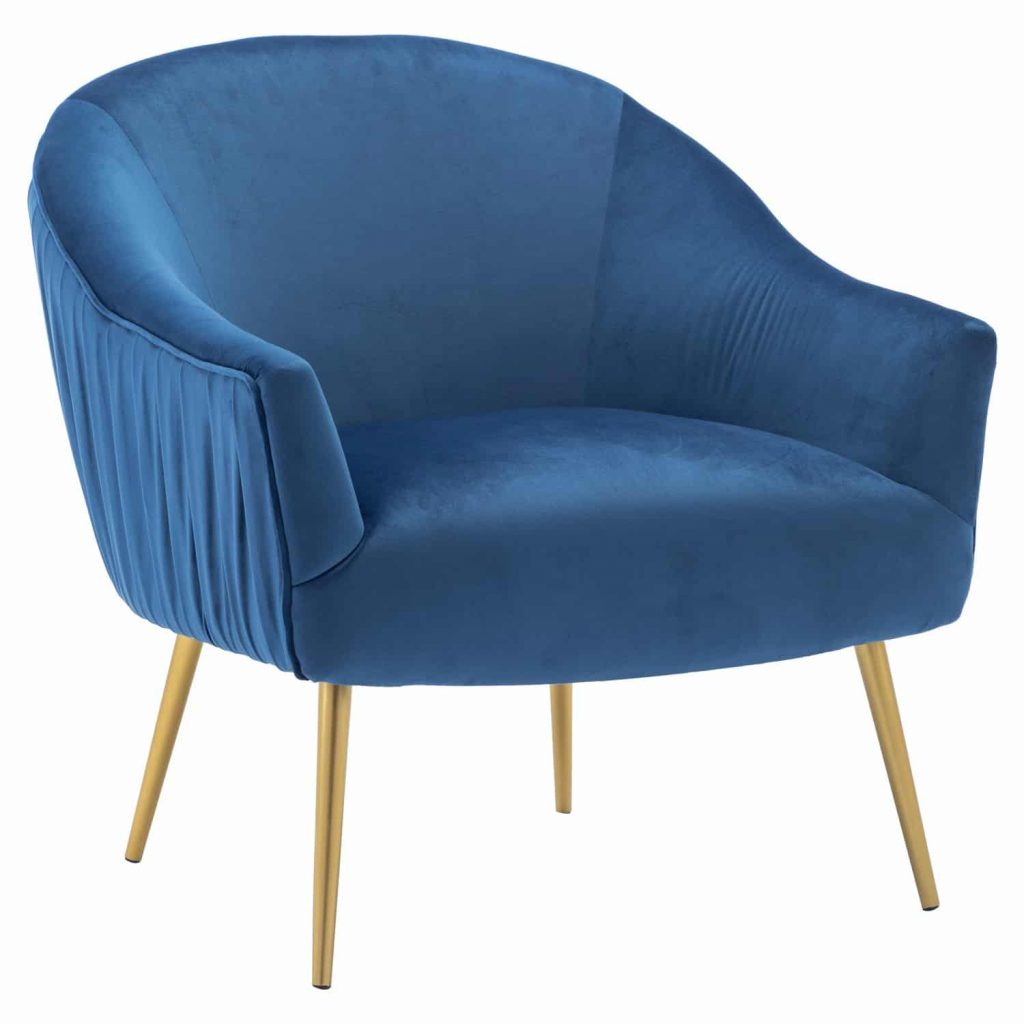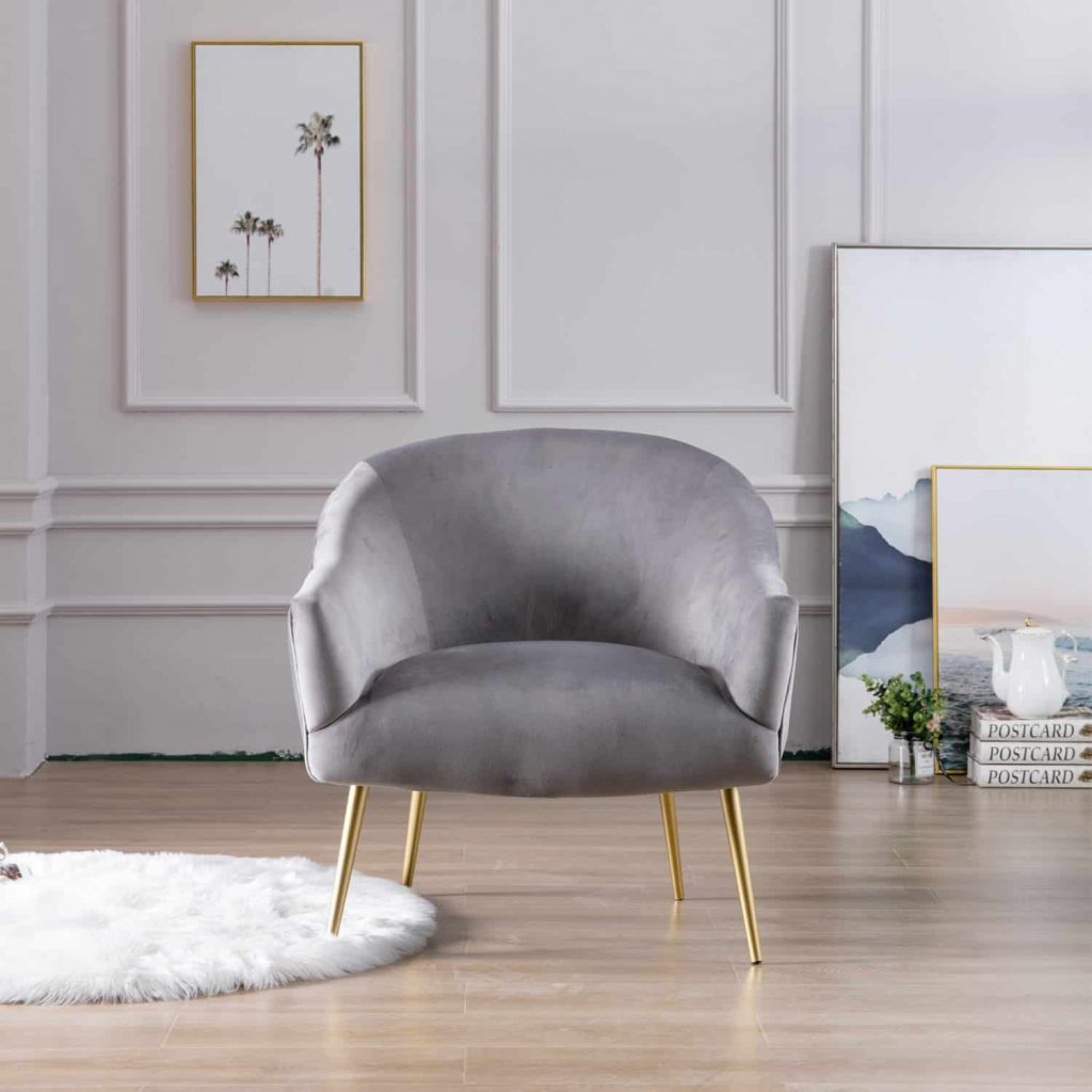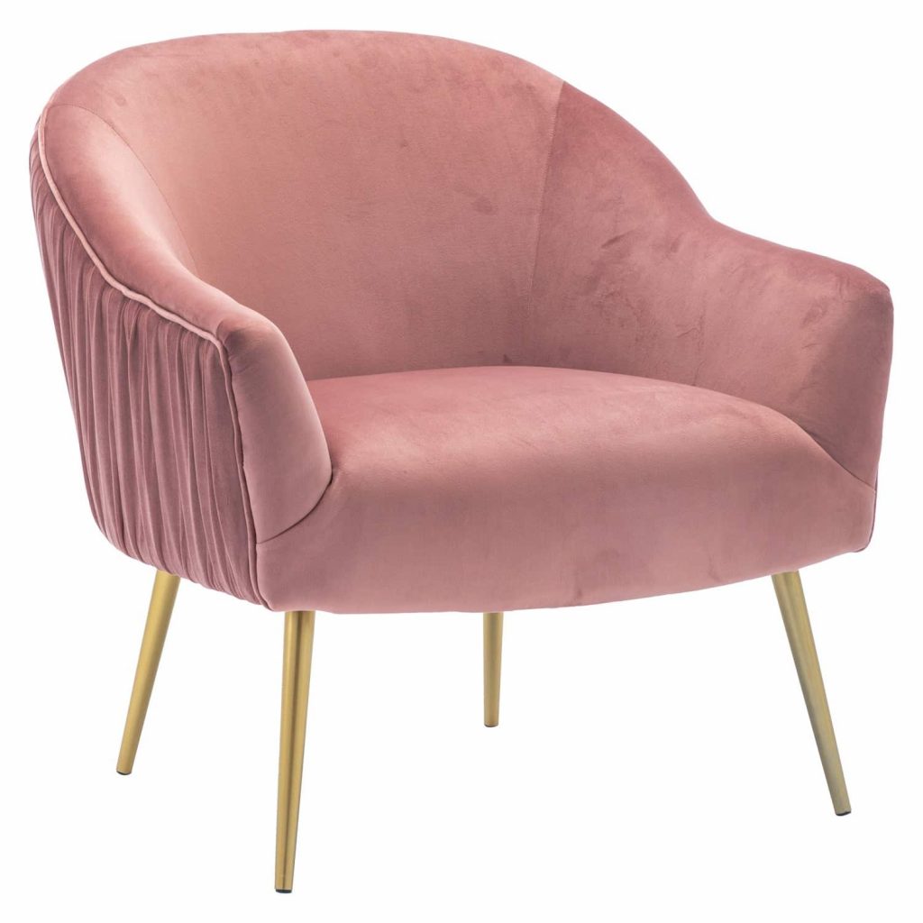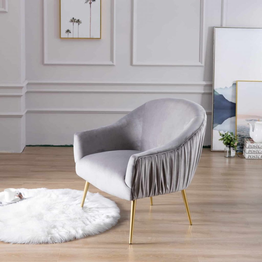 The Polyester & Iron Accent Chair is available in three finishes; blue, gray, and pink. It is constructed with a rubber wood frame, polyester seating, and iron legs. The backrest and seat are both padded for extra comfort. Ships one chair per carton and it is ready to be assembled upon delivery.