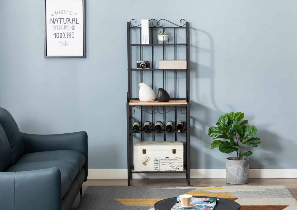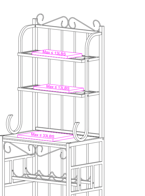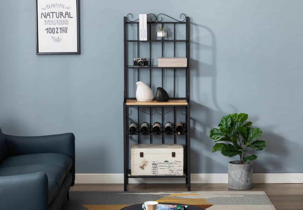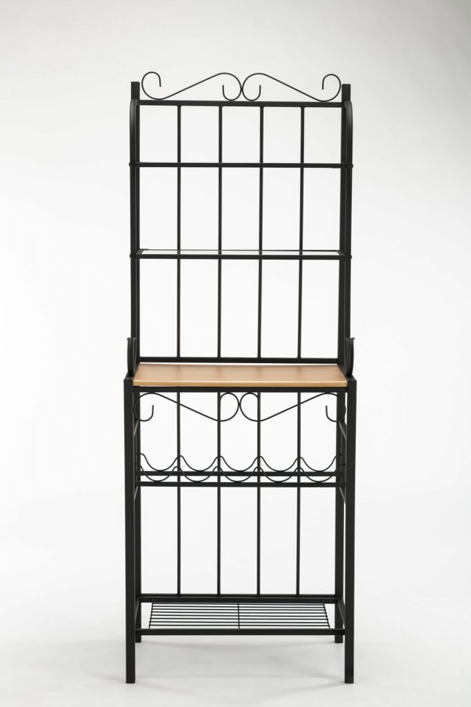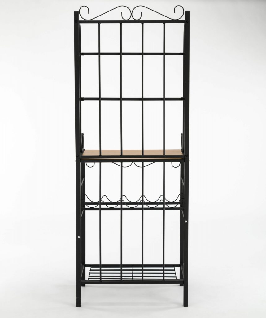Complete your dream kitchen with the Praha Baker’s Rack. Built from sturdy steel with a black powder-coated finish, this durable rack fits into any design aesthetic. Its four shelves hold kitchen implements, such as glassware and china, or decorative accents. A wine rack offers convenient storage for keeping your favorite bottles within easy reach. Get the best of design and functionality with the Praha Baker’s Rack.